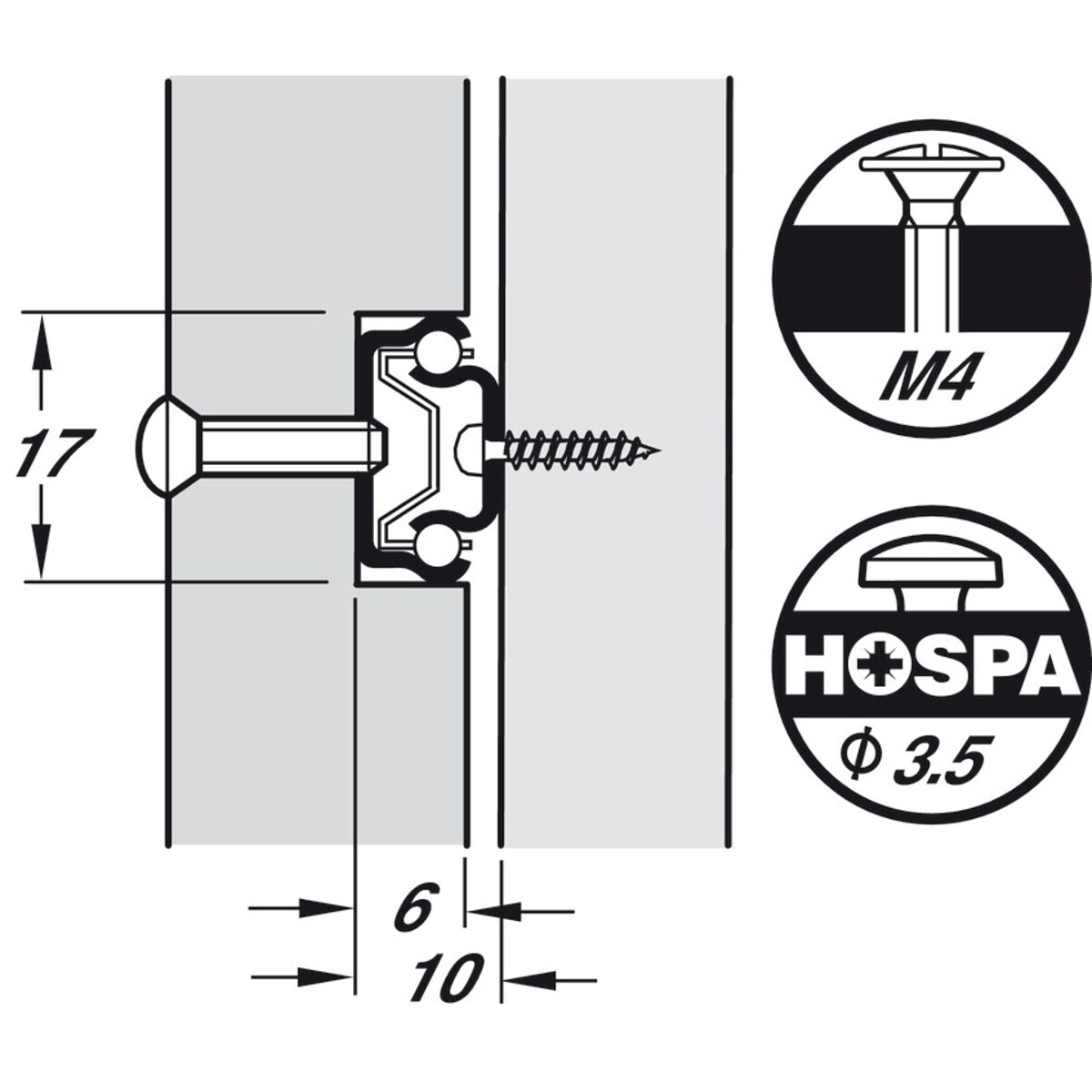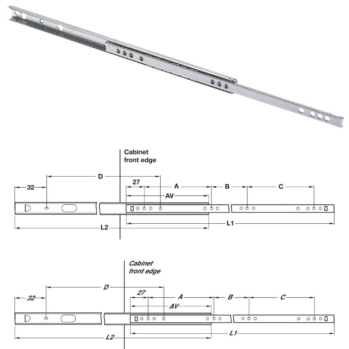 - Suitable for either side mounting (non-handed) or fitting into a 17mm wide x 9.8mm deep grooved drawer side