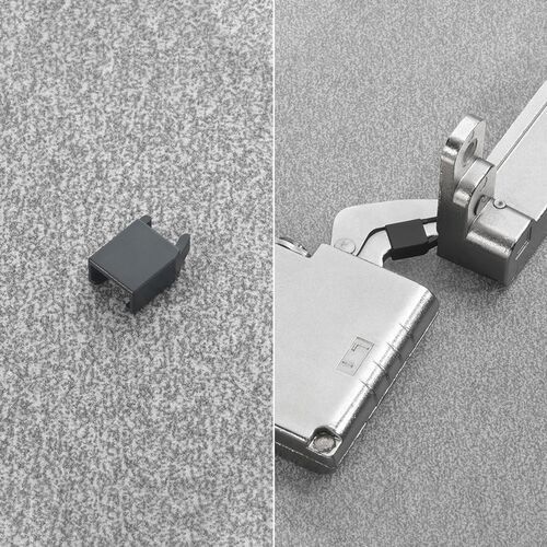 The 92-degree restrictor for Air Hinge Salice kit, is a simple accessory that reduces the opening angle of the Air concealed hinge to approximately 92°, helping to prevent doors from swinging too far and potentially bumping into adjacent cabinetry or walls. An easy add‑on for controlling door movement and improving safety and stability in kitchen, bathroom, and furniture applications.