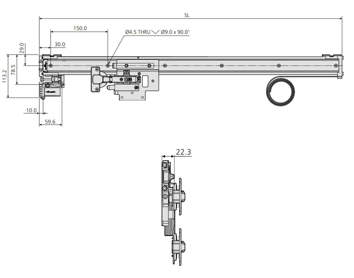 - The door retracts 131.5 mm less than the slide length
