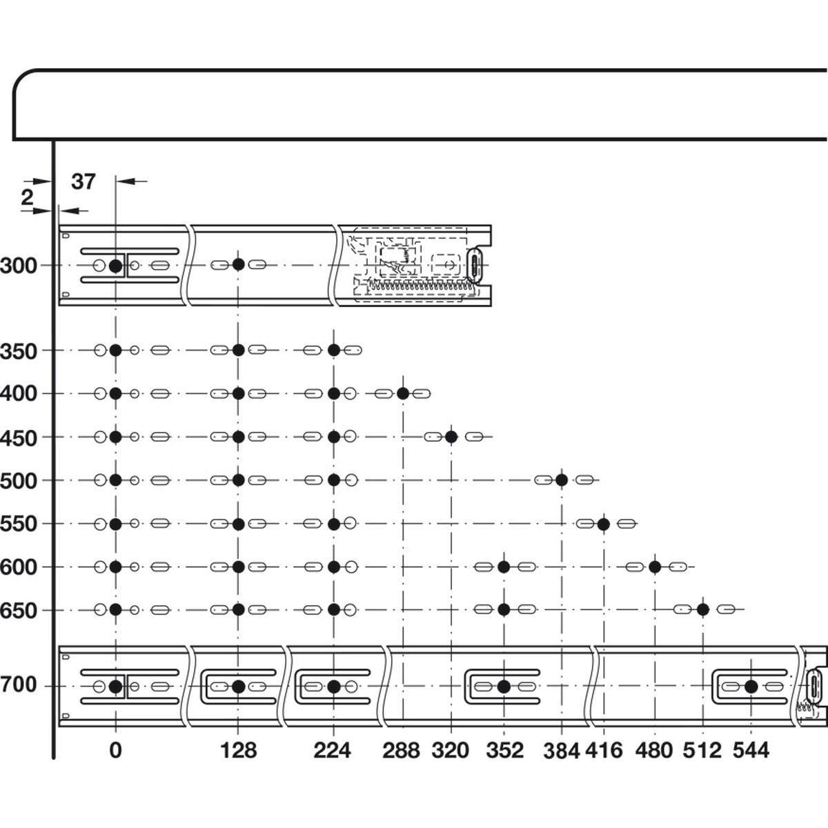 - Maximum recommended drawer width: 600mm