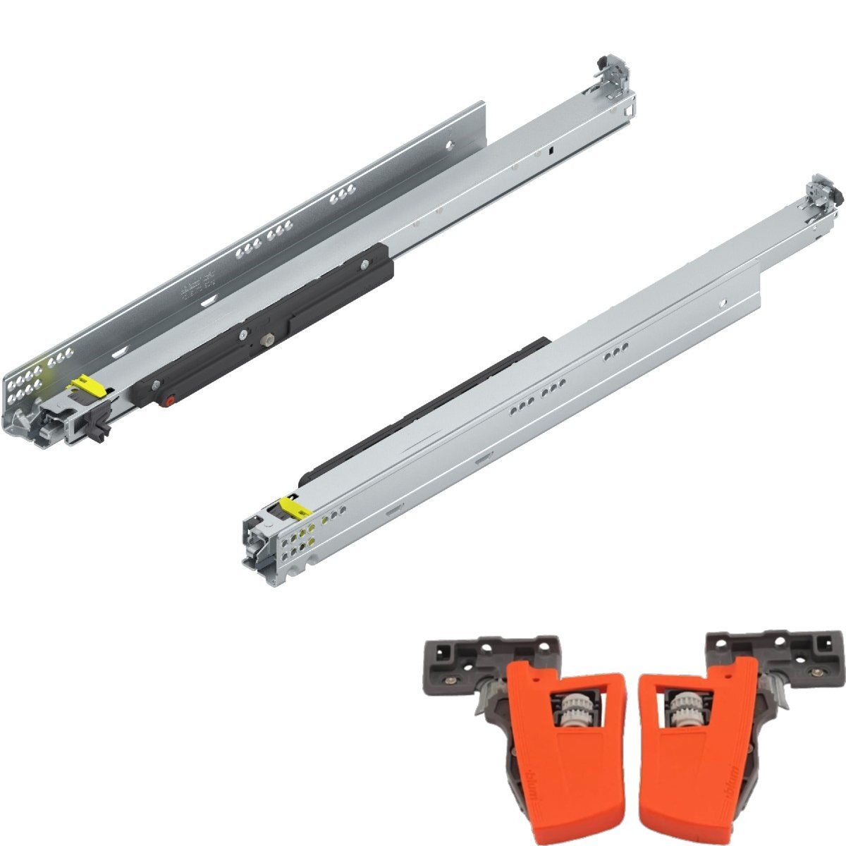 Blum Movento synchronised drawer slides with an integrated tip-on (push to open) mechanism. High quality and smooth operation for heavy and large kitchen pan drawers, sideboards and wardrobe drawers up to 70kg. Effortless touch release concealed runners action with blum lifetime warranty.