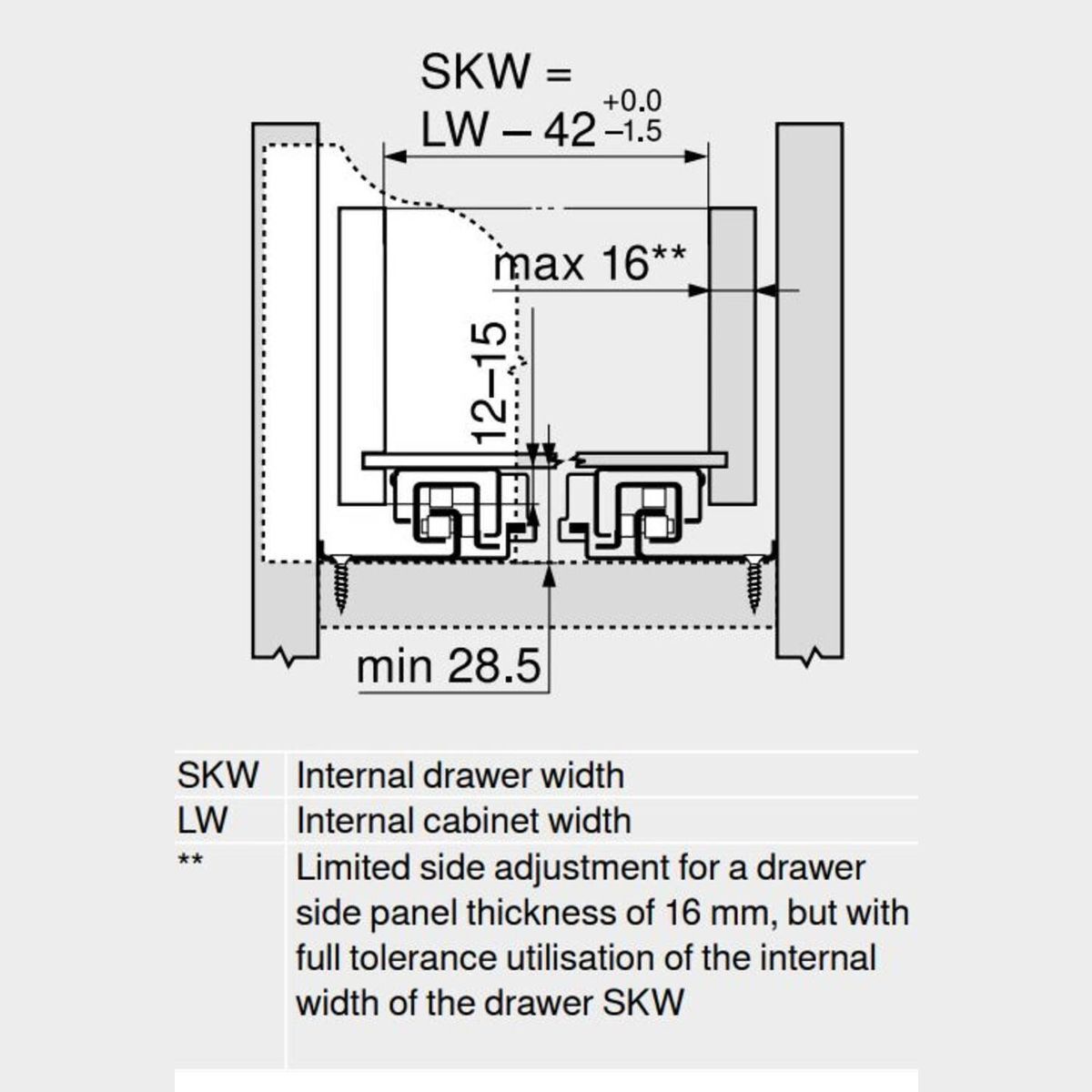- To work with maximum drawer sides: 16mm thick