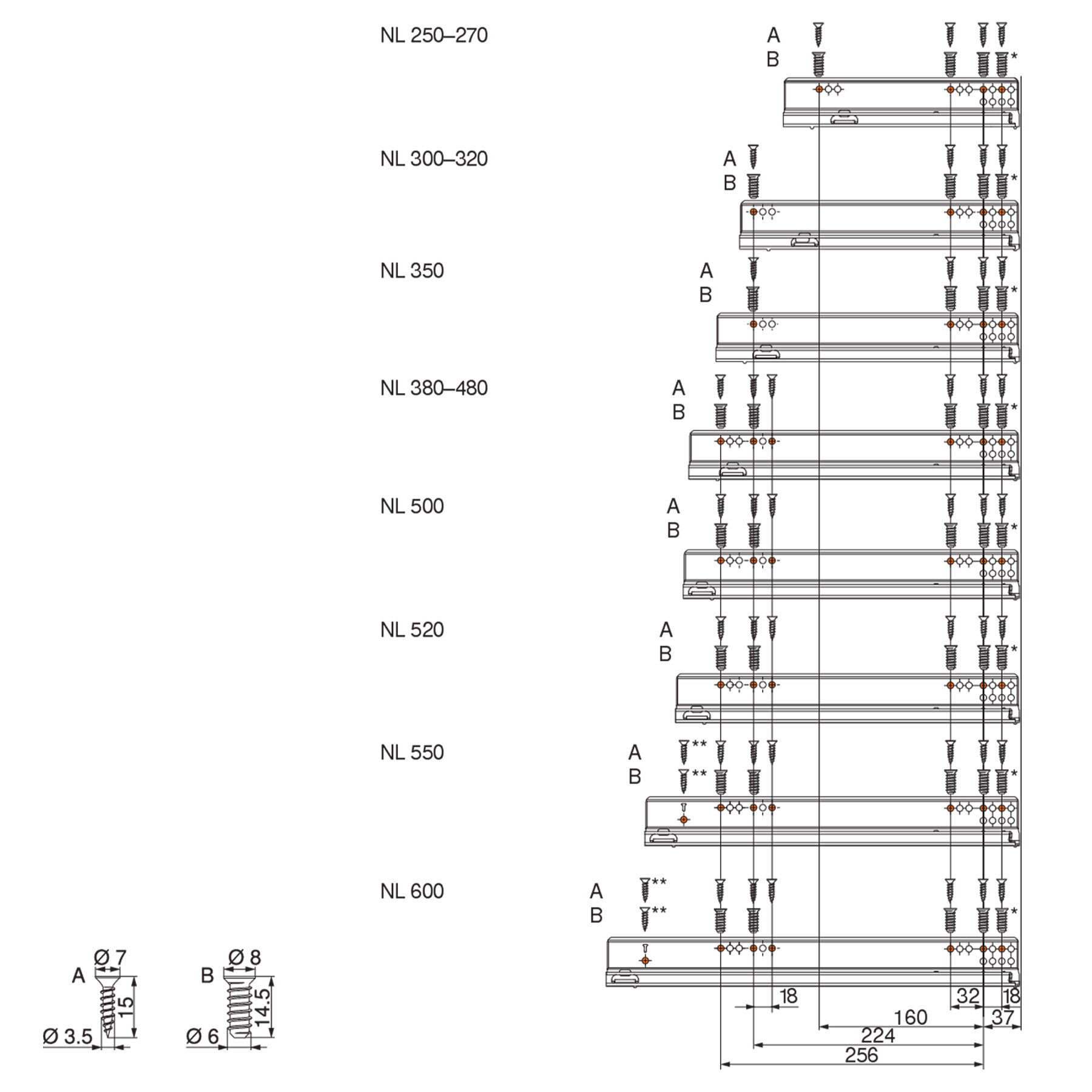 - Runner lengths: 350-500mm