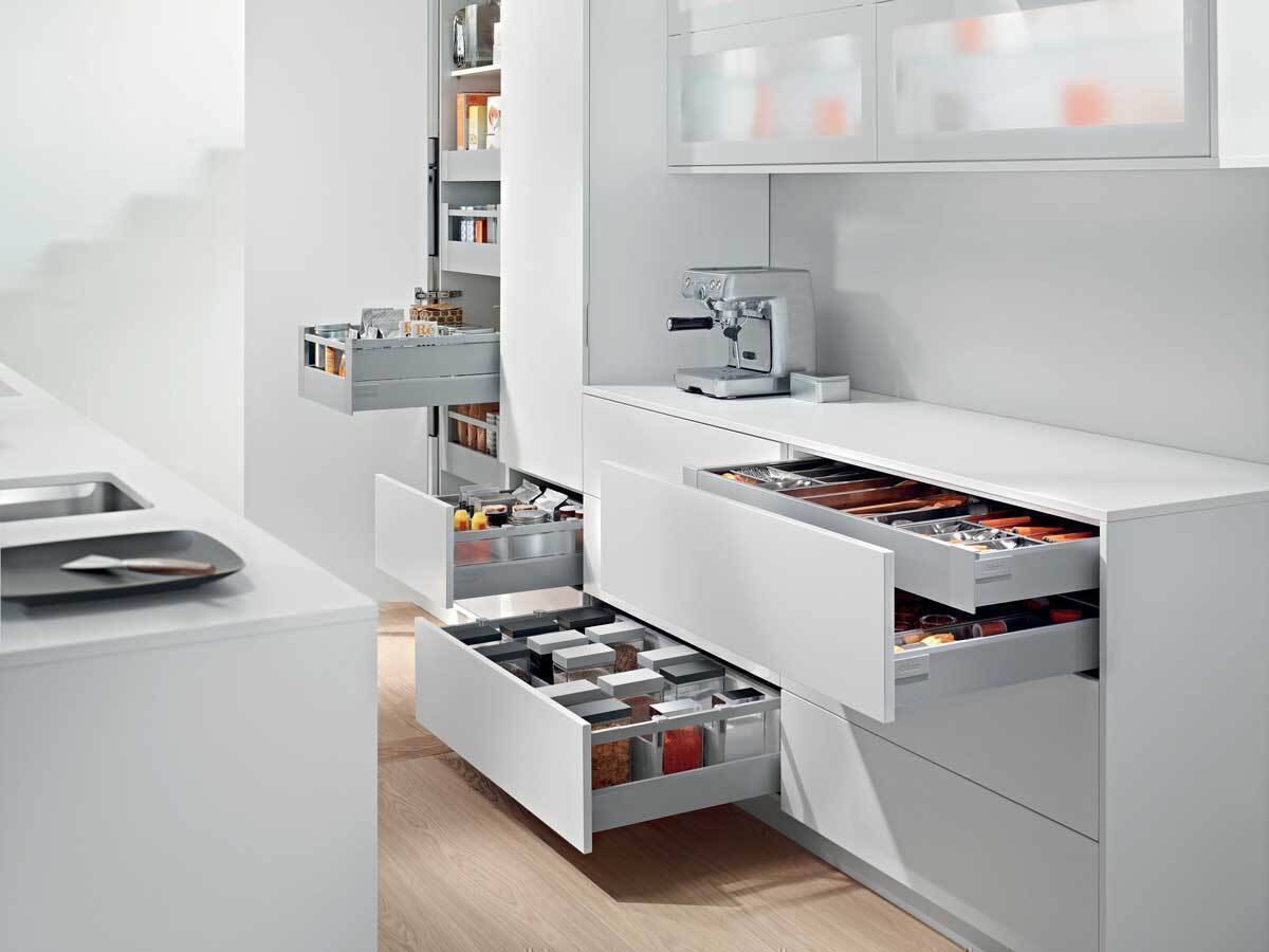 Internal drawer sets from Blum Antaro for kitchen or wardrobe ready for immediate installation. These drawers are supplied with an internal drawer front so they can be fitted behind a hinged door. Drawers are supplied in individual boxes, assembled, so all you have to do is install the runners in a cabinet. With Blum's lifetime warranty, you have the assurance that the drawer will last for a long time.
