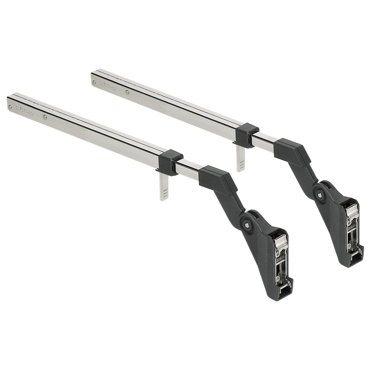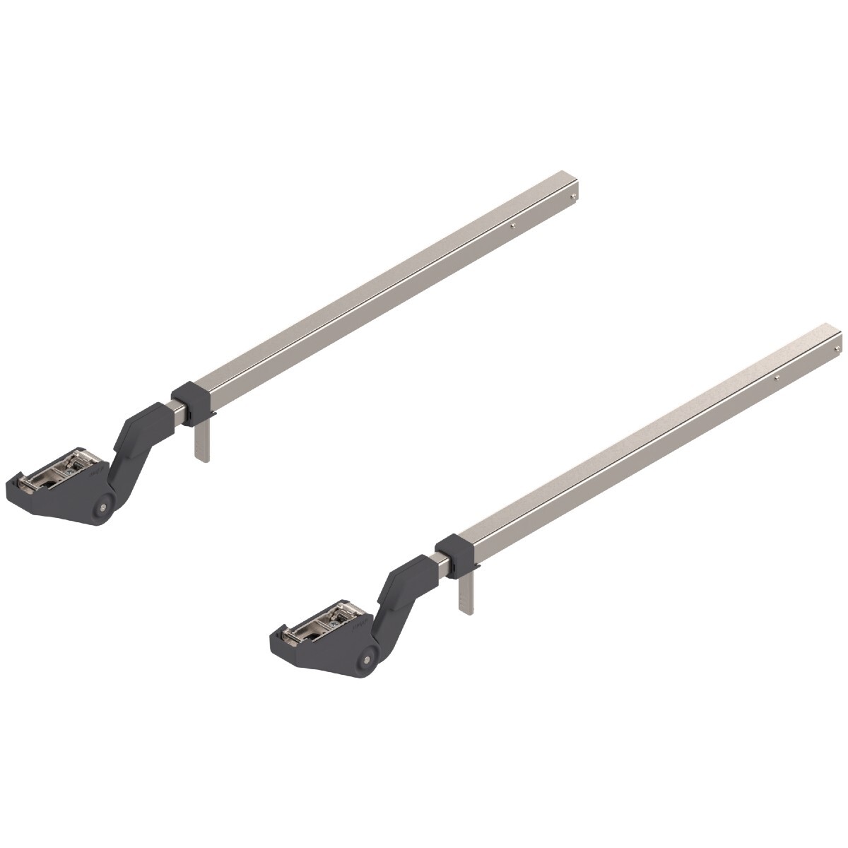 The Blum Aventos HF telescopic arm set is an essential component for high and mid-wall units. It allows large fronts to fold up and out of the way, providing users with great freedom of movement.