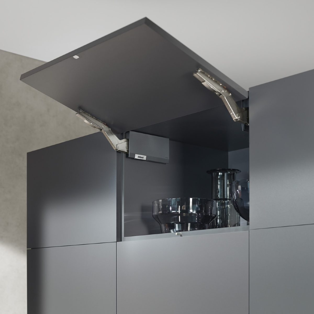 The Blum Aventos HK top is a compact and highly functional stay lift system that can be combined with different color cover caps. These cover caps are available for both the BLUMOTION version (which includes a pair of cover caps and Blum branded name plates).