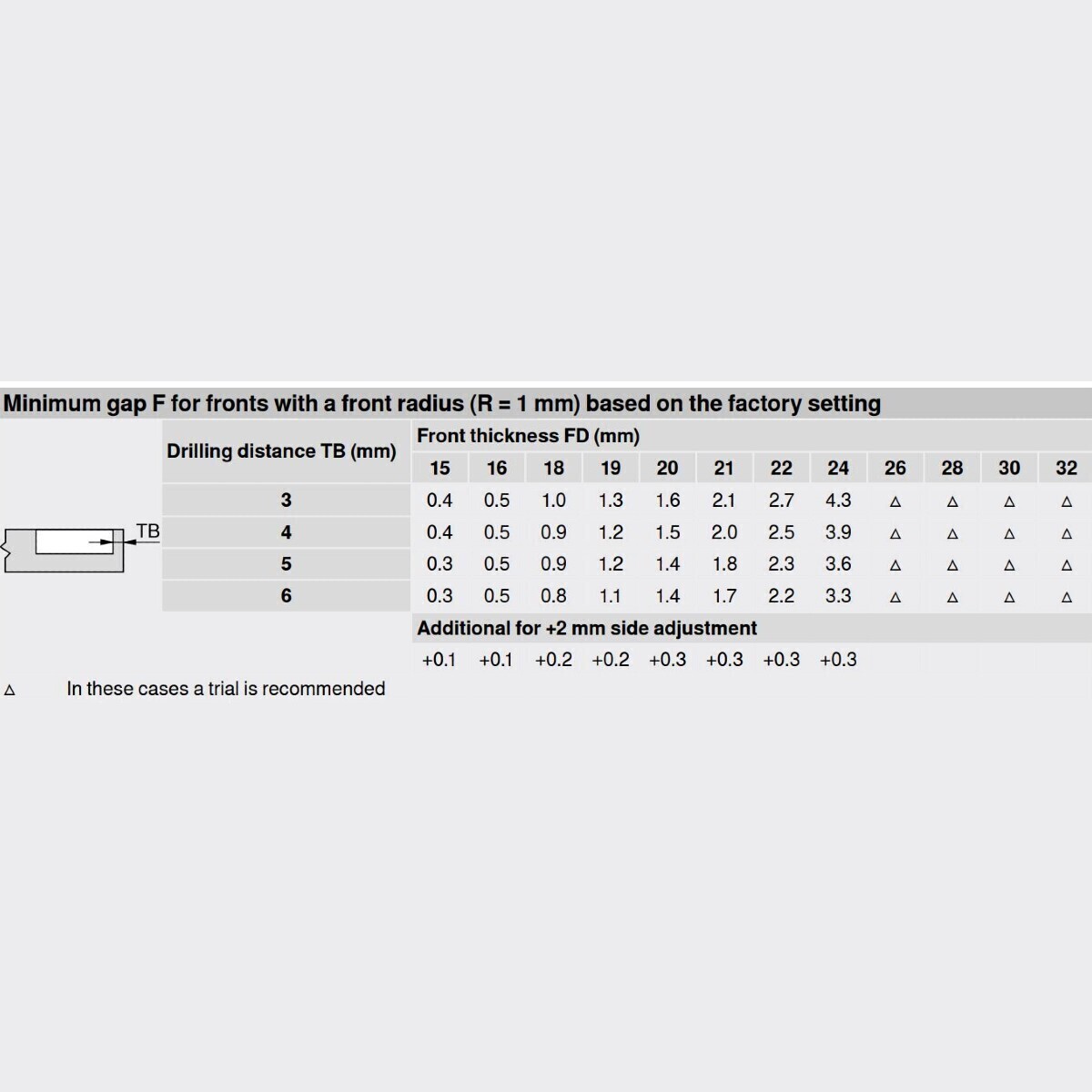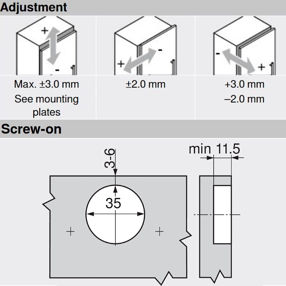 - Depth adjustment: plus 3/minus 0,5 mm, With screw