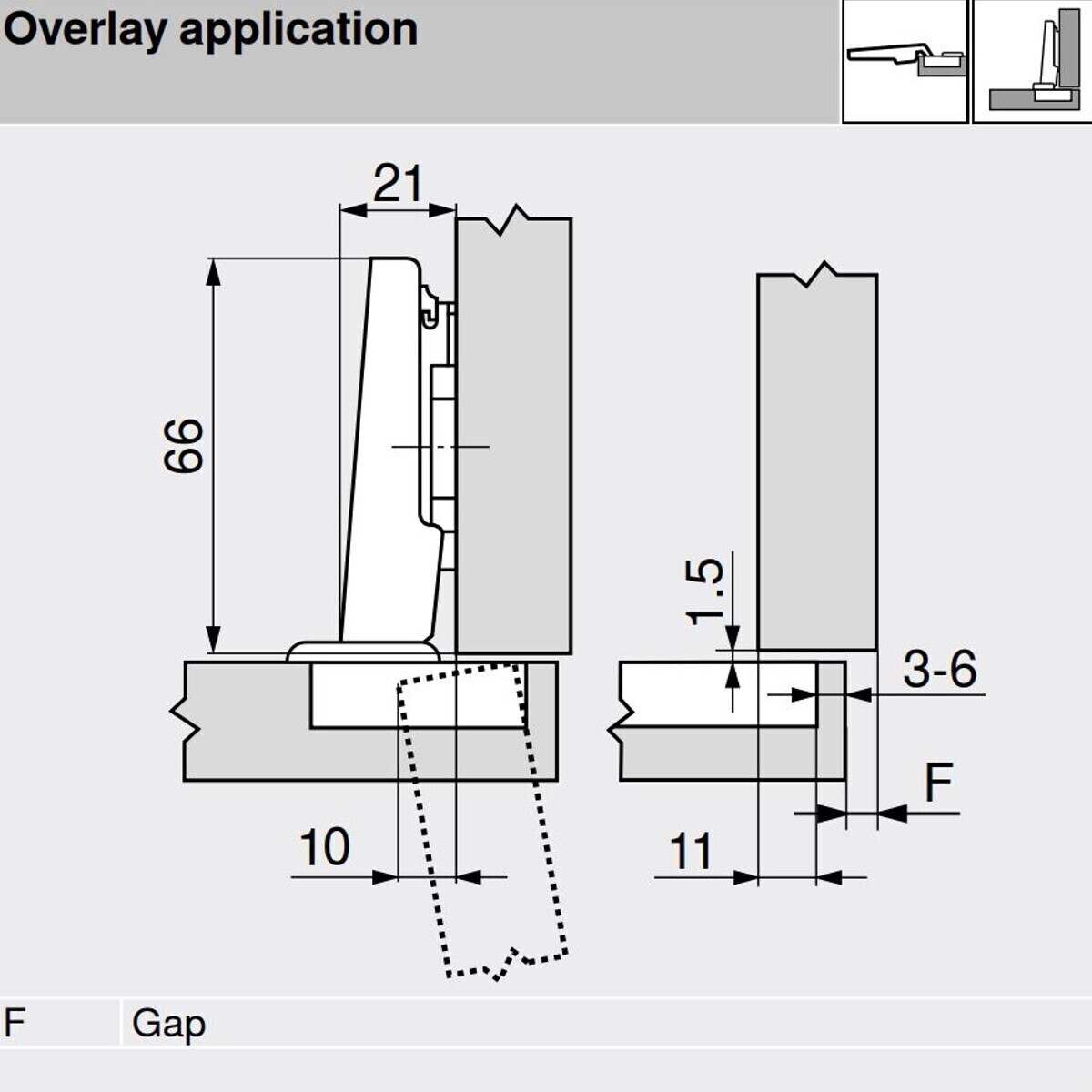 The Blum clip top overlay 107 degree cabinet hinge 75T1550 is a high-quality hinge designed for cabinet doors with an overlay. This hinge ensures reliable function and attractive design for your cabinet doors. Whether you’re installing new cabinets or upgrading existing ones, the Blum clip top hinge provides ease of adjustment and smooth operation.