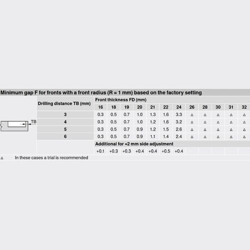 - Depth adjustment: plus 3mm/minus 0,5mm, with screw