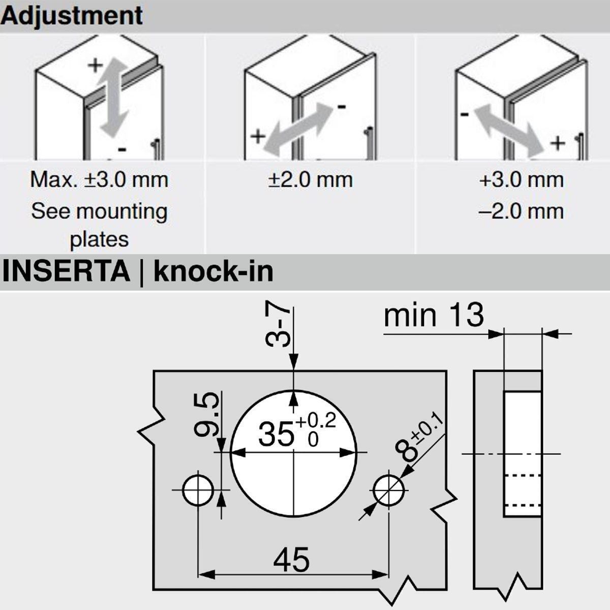 - Side adjustment: +/- 2mm
