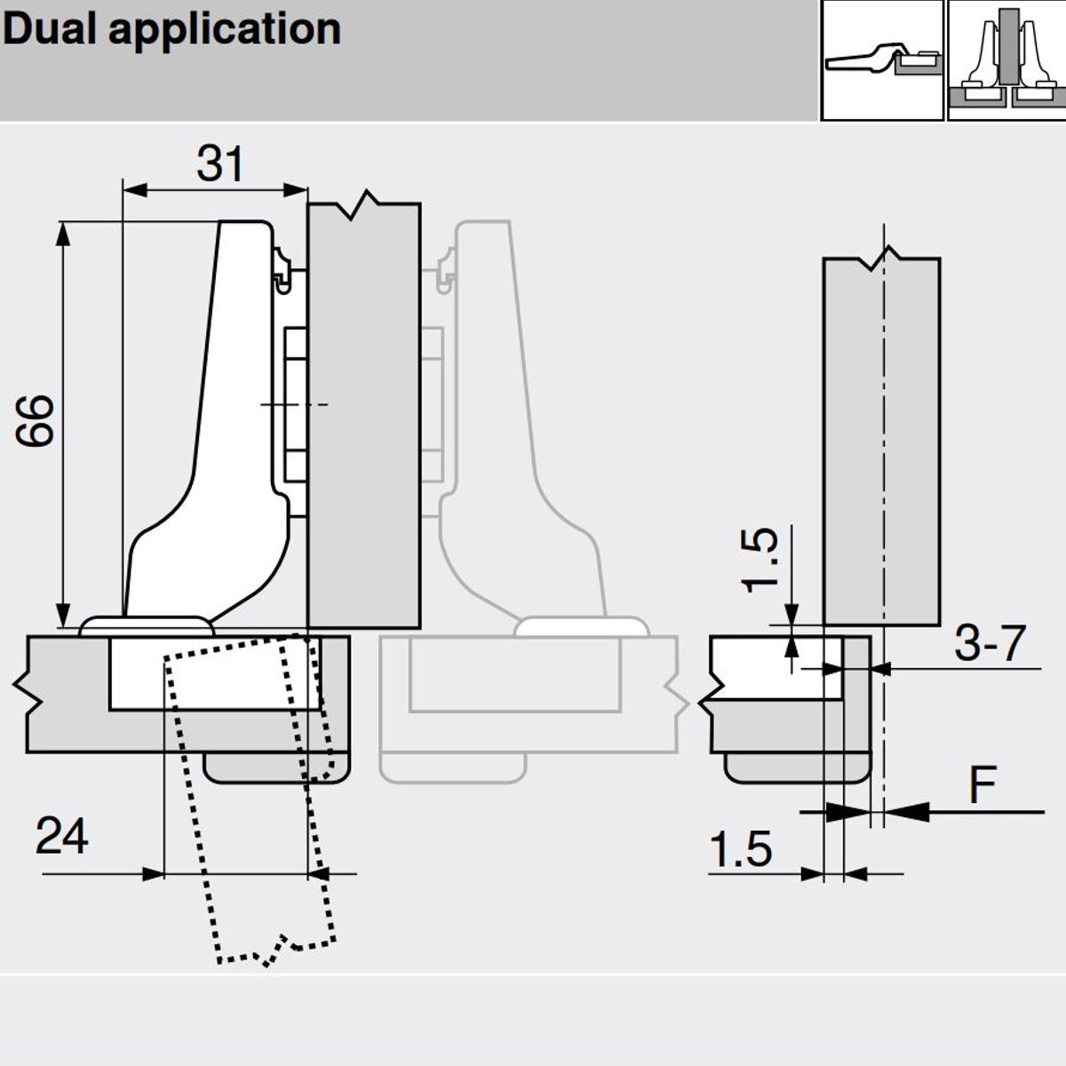 The Blum clip top half overlay 95 degree cabinet hinge 70T9690BTL inserta is a high-quality hinge designed for cabinet doors with a half overlay. This hinge ensures reliable function and attractive design for your cabinet doors. Whether you’re installing new cabinets or upgrading existing ones, the Blum clip top hinge provides ease of adjustment and smooth operation.