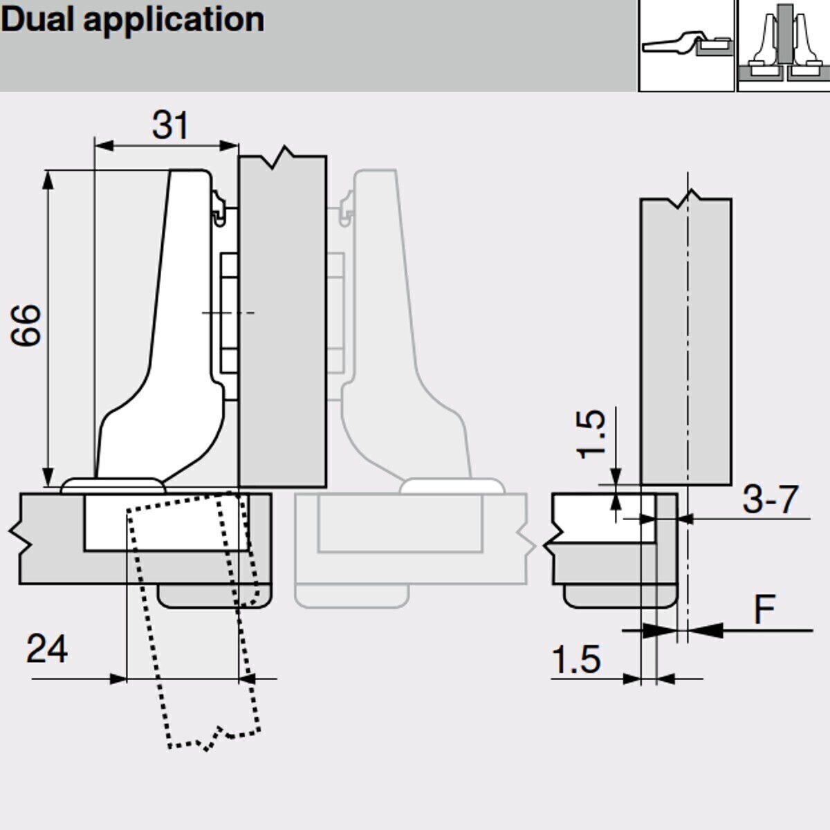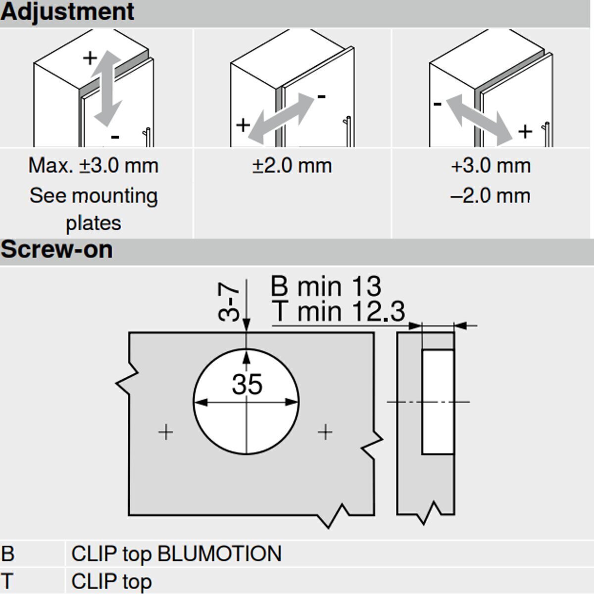 The Blum clip top half overlay 95 degree cabinet hinge 71B9650 is a high-quality hinge designed for cabinet doors with a half overlay. This hinge ensures reliable function and attractive design for your cabinet doors. Whether you’re installing new cabinets or upgrading existing ones, the Blum clip top hinge provides ease of adjustment and smooth operation.