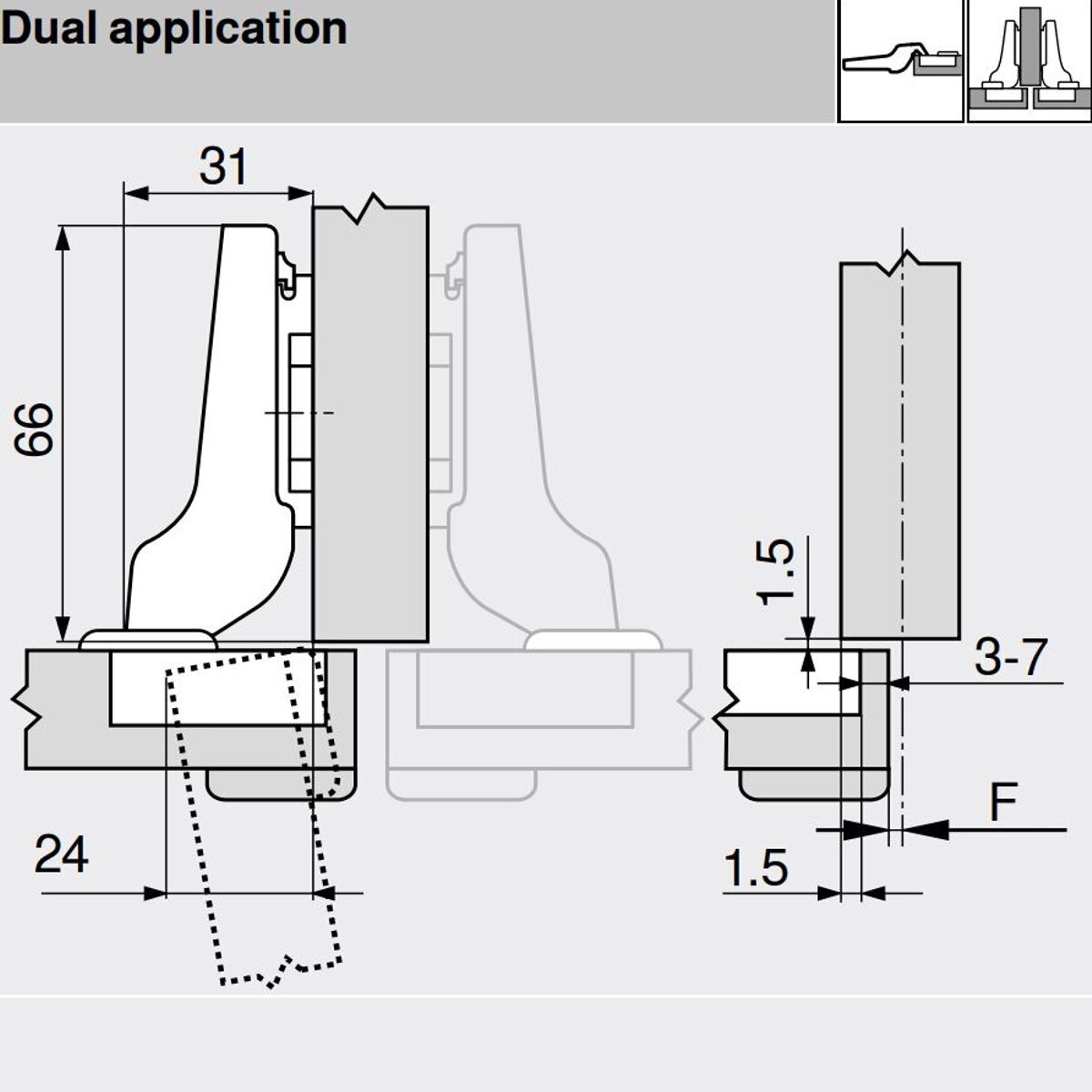 The Blum clip top half overlay 95 degree cabinet hinge 70T9650.TL is a high-quality hinge designed for cabinet doors with a half overlay. This hinge ensures reliable function and attractive design for your cabinet doors. Whether you’re installing new cabinets or upgrading existing ones, the Blum clip top hinge provides ease of adjustment and smooth operation.