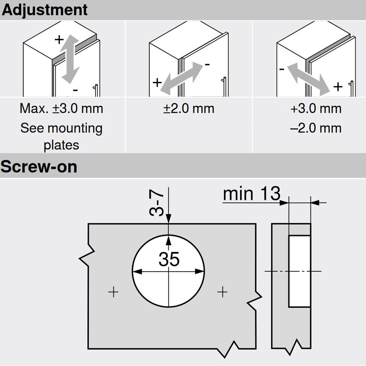 - Depth adjustment: +3mm/- 2mm