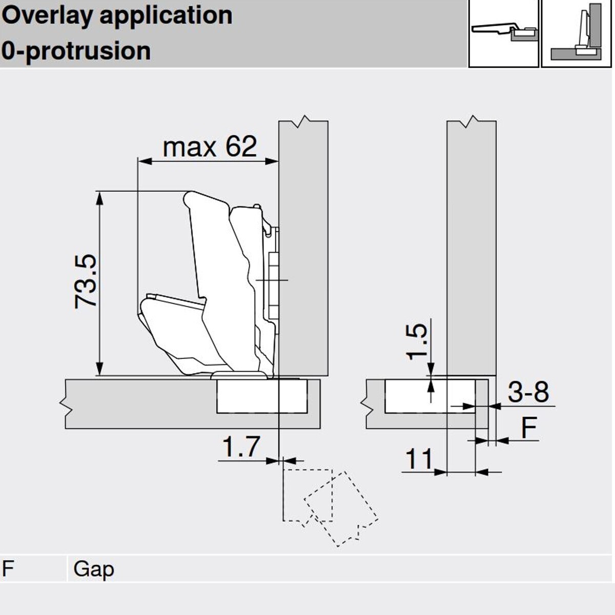 - 0-protrusion - the door clears the opening space entirely