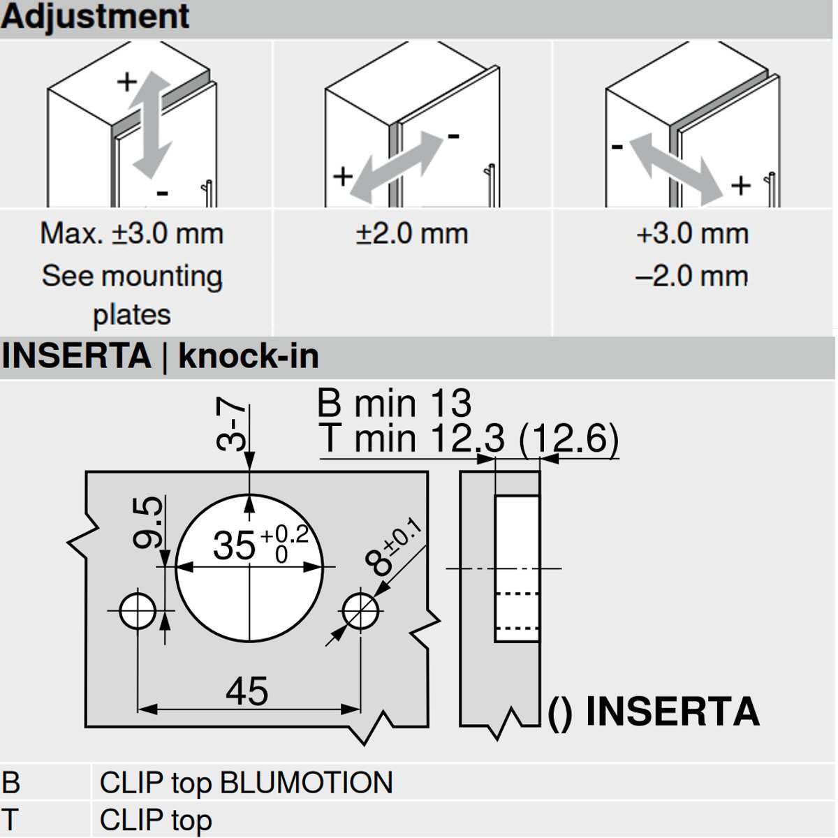 The Blum clip top overlay 95 degree cabinet hinge 70T9590BTL inserta is a high-quality hinge designed for cabinet doors with an overlay. This hinge ensures reliable function and attractive design for your cabinet doors. Whether you’re installing new cabinets or upgrading existing ones, the Blum clip top hinge provides ease of adjustment and smooth operation.
