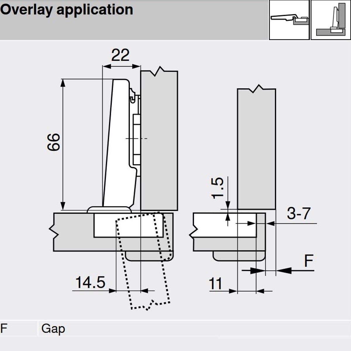 - Clip top profile door hinge 71B9580_ON (for thick doors)