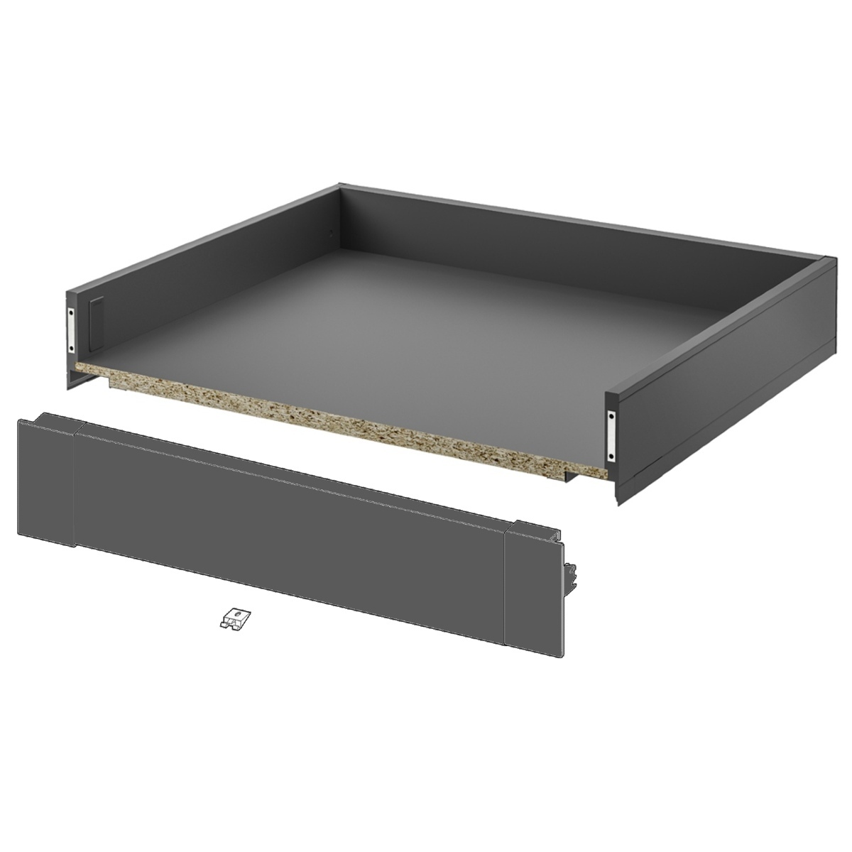 Shallow and deep drawer sets from Blum Legrabox for kitchen or wardrobe ready for immediate installation. Drawers are supplied in individual boxes, assembled and with plastic fronts. With Blum's lifetime warranty you have the assurance that the drawer will last for a long time.