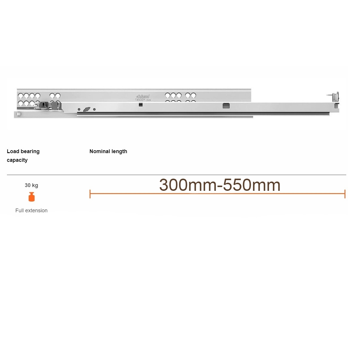 Blum 560F Tandem Plus Blumotion 30kg (17-19mm Drawer Sides)