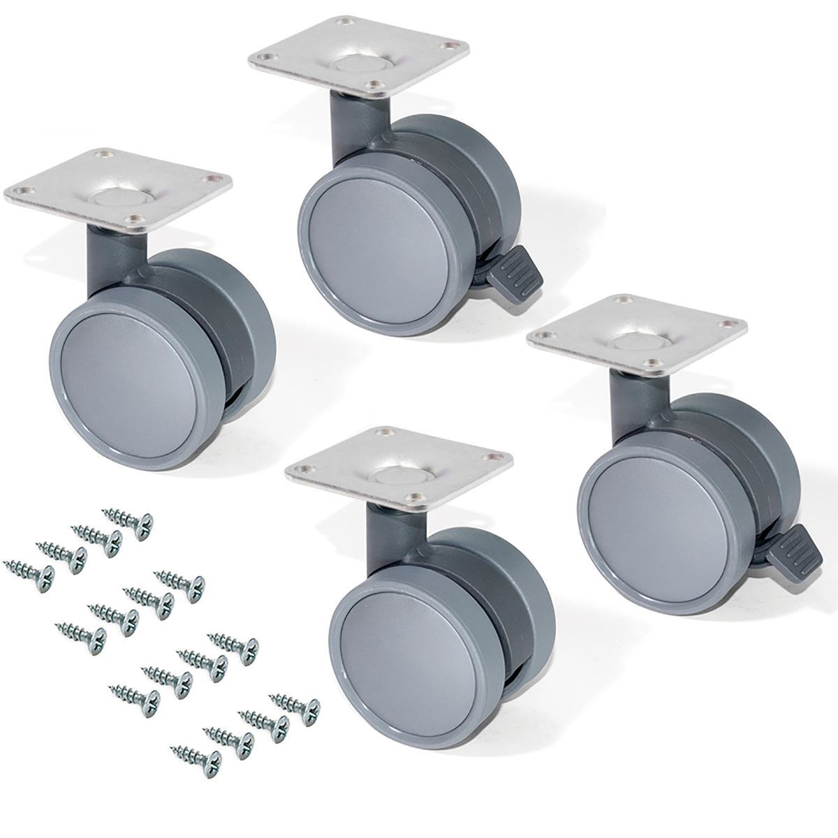 Bowl wheel kit Ø50 grey for cabinets, coffee tables and any other furniture with a maximum weight of 200kg. There are 4 castor wheels provided in the kit 2 with brakes and 2 without brakes.