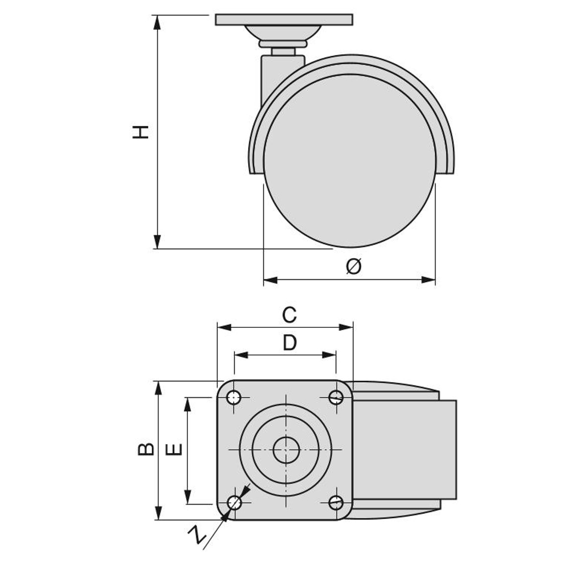Castors kit Ø30mm black for cabinets, coffee tables and any other furniture with a maximum weight of 60kg. There are 4 castor wheels provided in the kit.