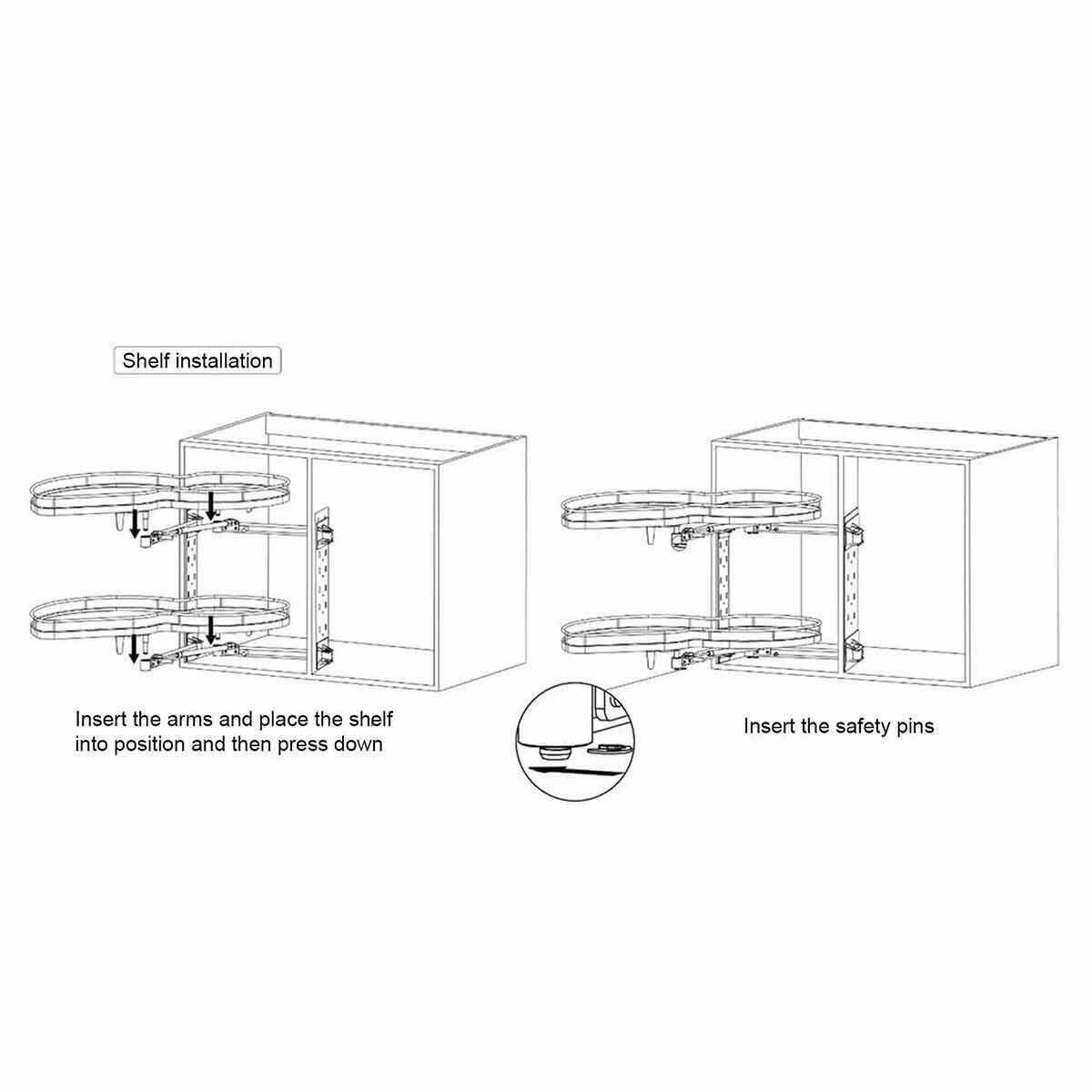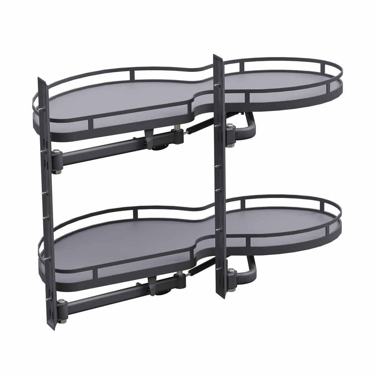 The Delta Corner pull-out in anthracite is a system designed for blind corner cabinets. It features two independent sliding baskets, maximizing the use of space in the cabinet’s depth. Equipped with a round railing, an anti-slip mat, and a soft-close system, this corner cabinet system ensures convenience and organization. This pull out unit is great for storing pots, pans, spices, grocery, jars and other kitchen essentials.