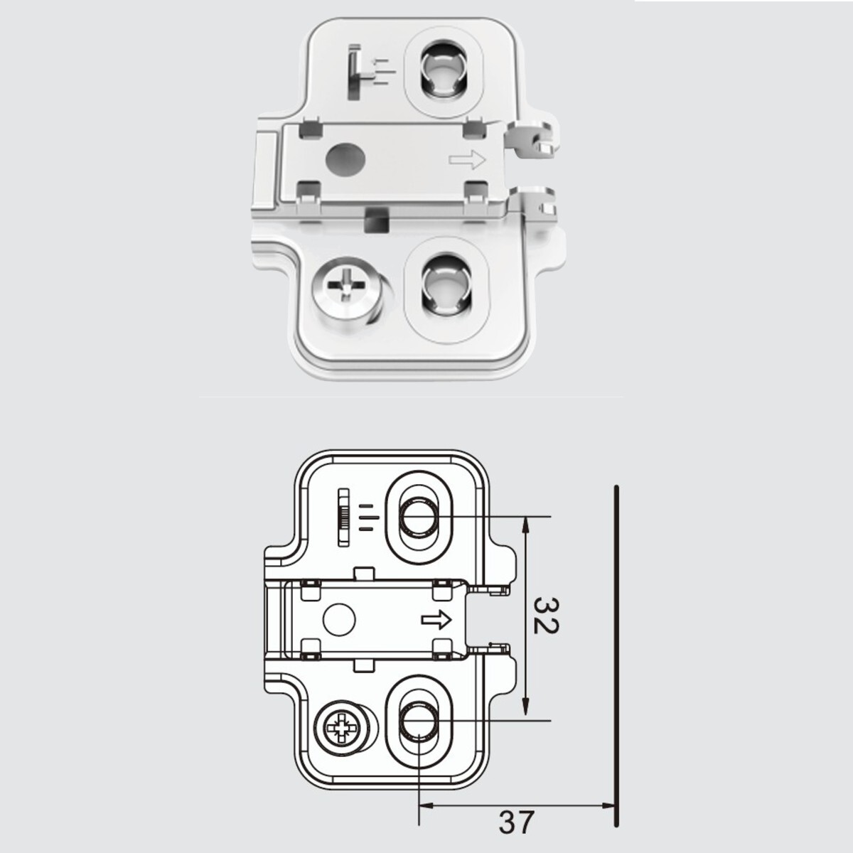 - Cam adjustable plate with euro screws