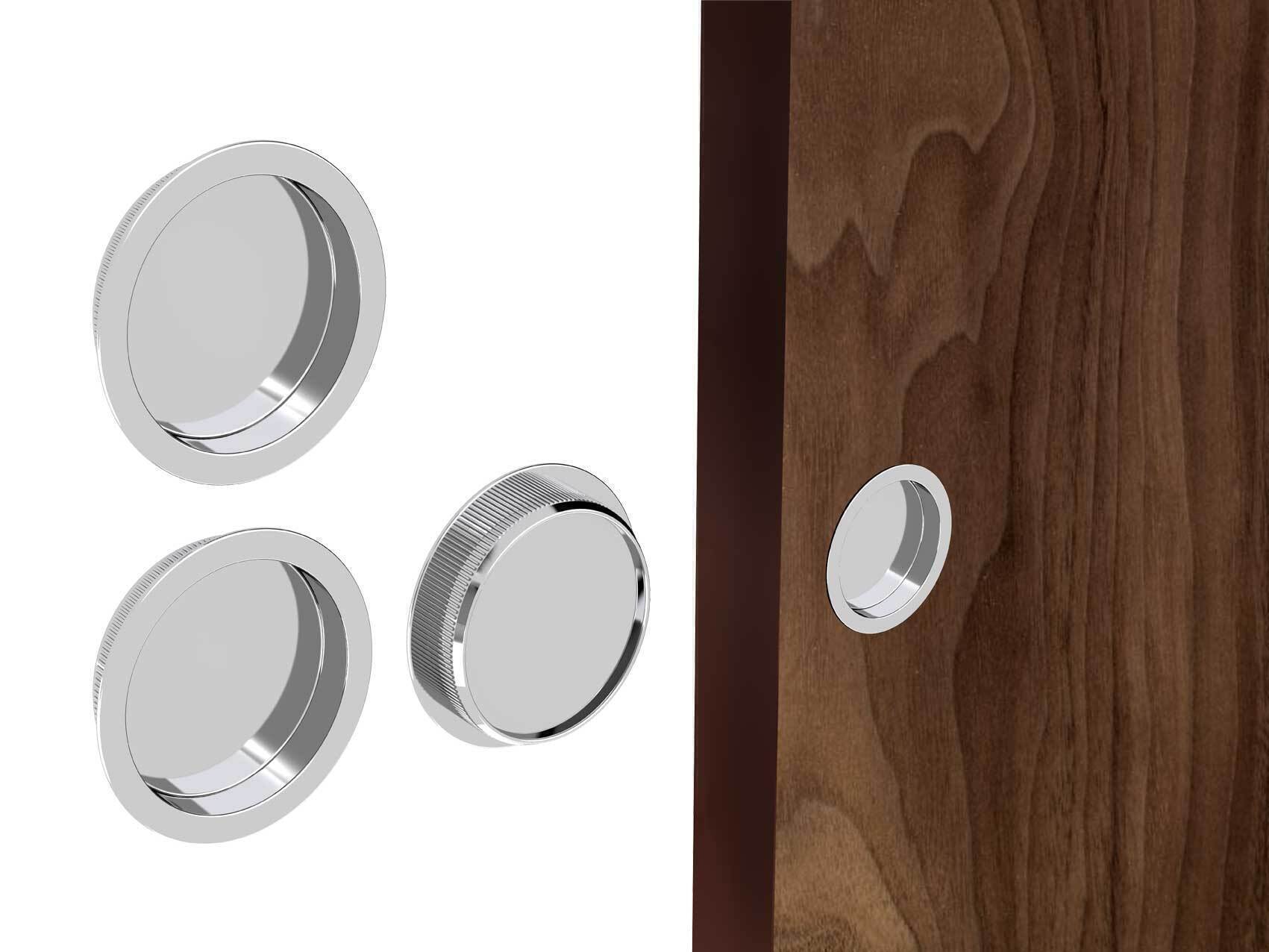 Set of round flush handles available in three popular finishes. Great quality and is perfect for sliding doors.