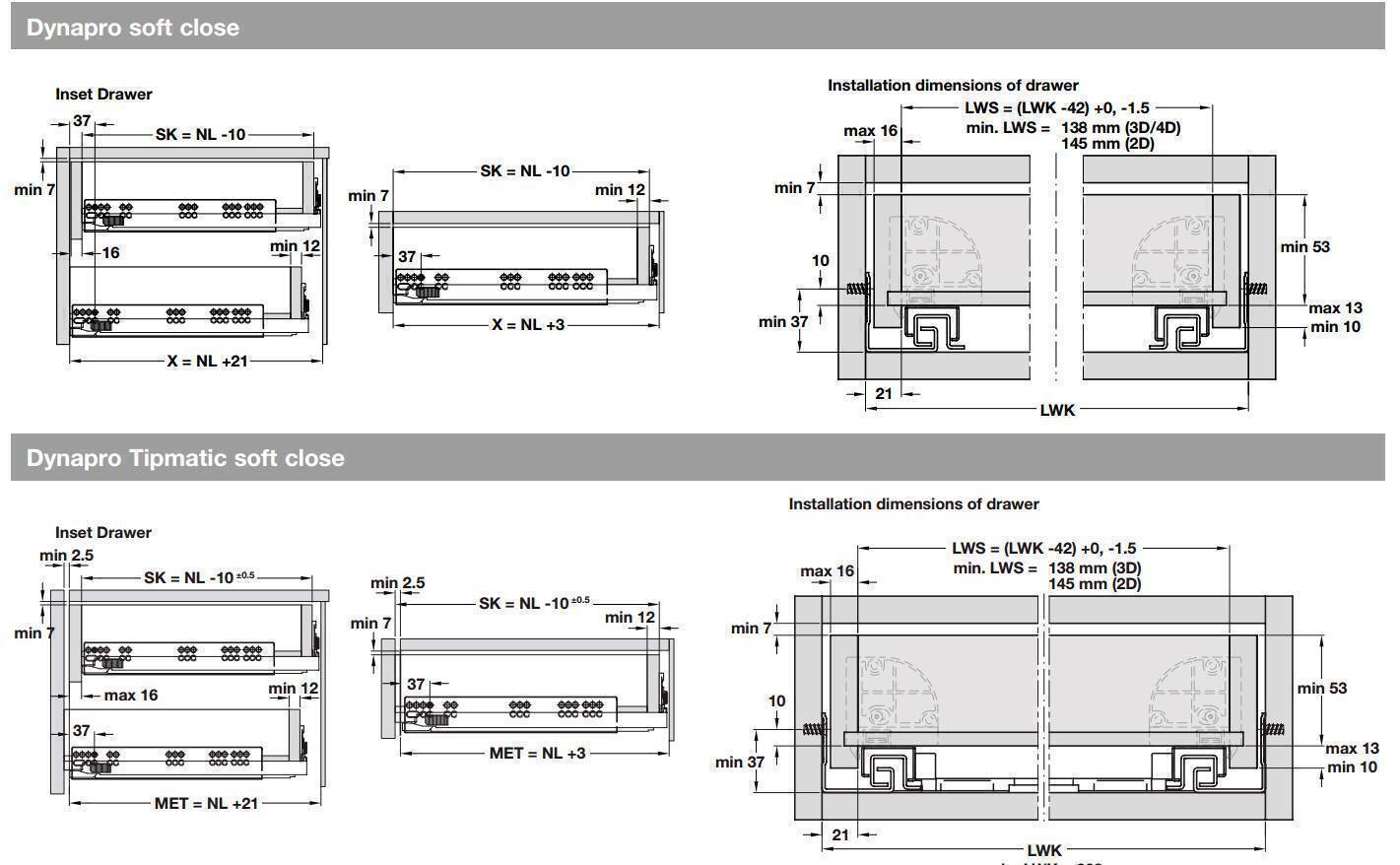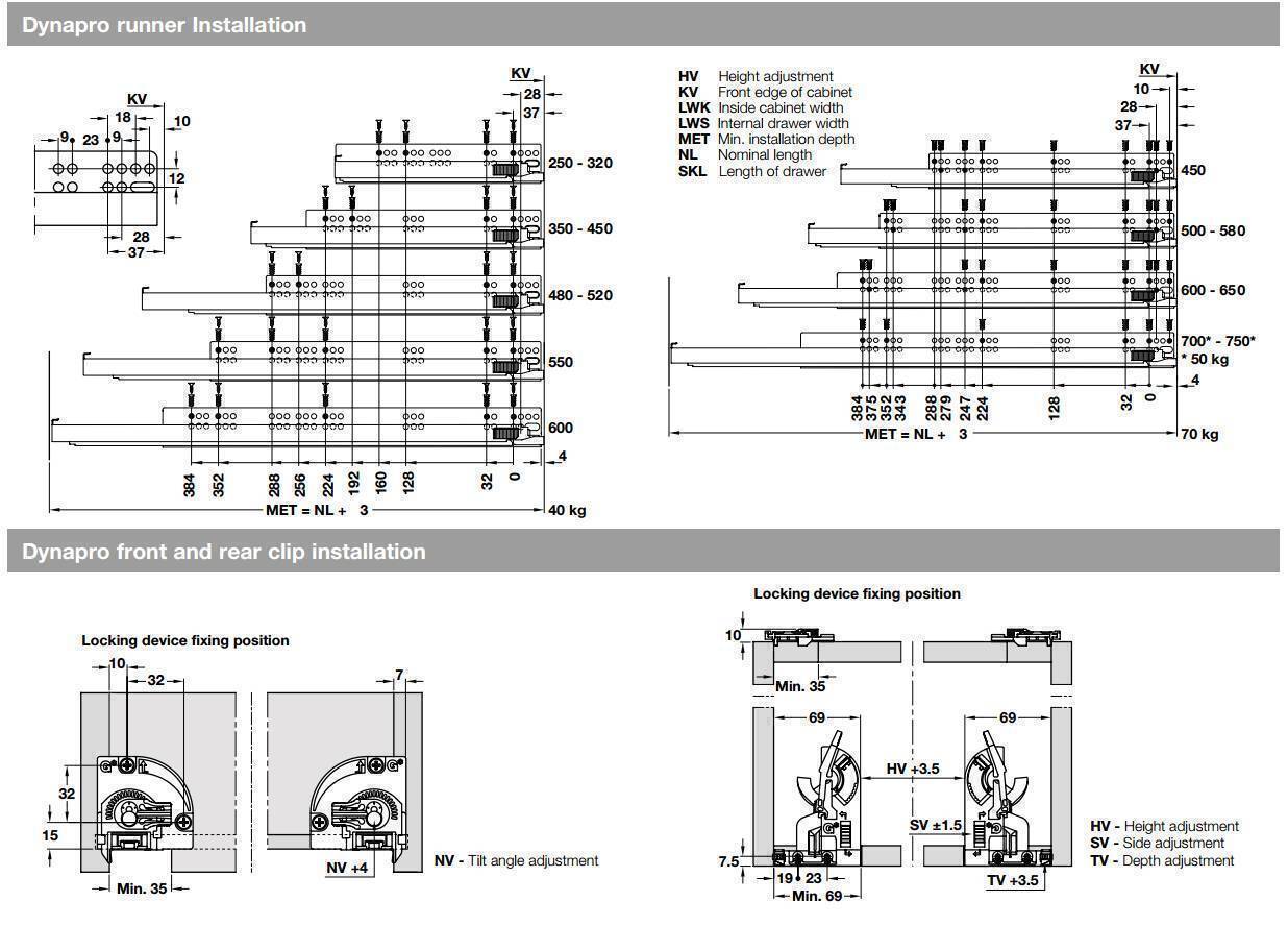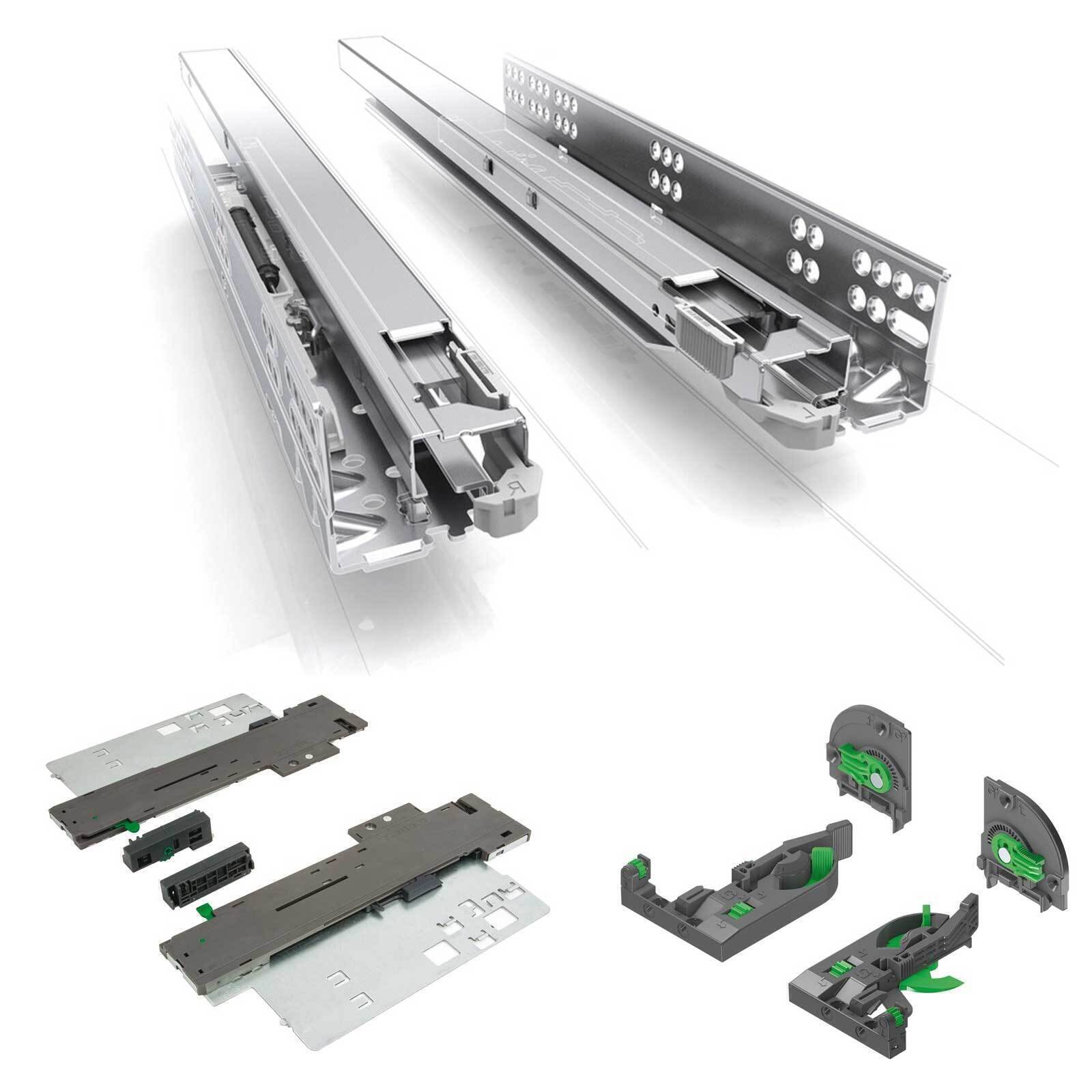 New Grass concealed drawer slides for wooden drawers. Now with Soft Close and Touch release function. Improved liquid soft close provides you with effortless opening and closing action and 4D adjustment allows to align the drawer precisely without use of any tools. Push to open attachments have 3 different weight settings which allows to adjust everything to provide smooth and easy operation.