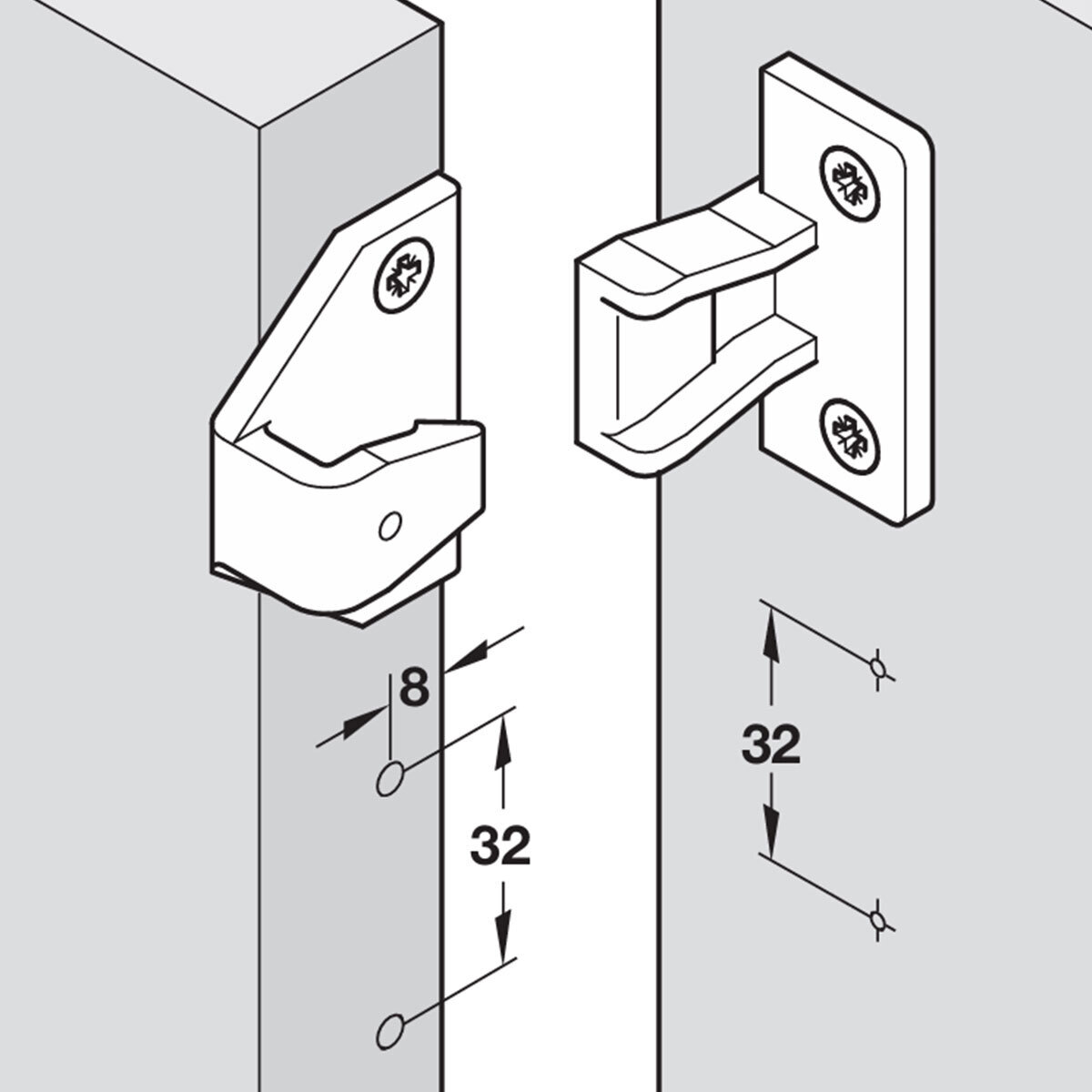 Keku Clips offer a discreet, removable fixing system for panels and frames, combining strength with easy handling. The ASR fitting serves as the frame component, providing a stable mounting point that allows panels to be clipped on and removed without visible fixings.