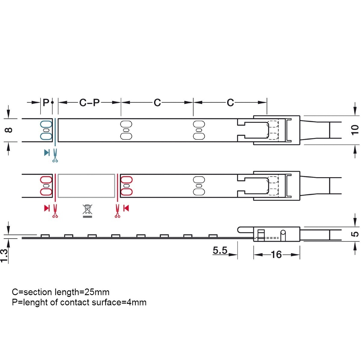 Colour temperature | Light output per meter | Luminous efficacy per Watt |