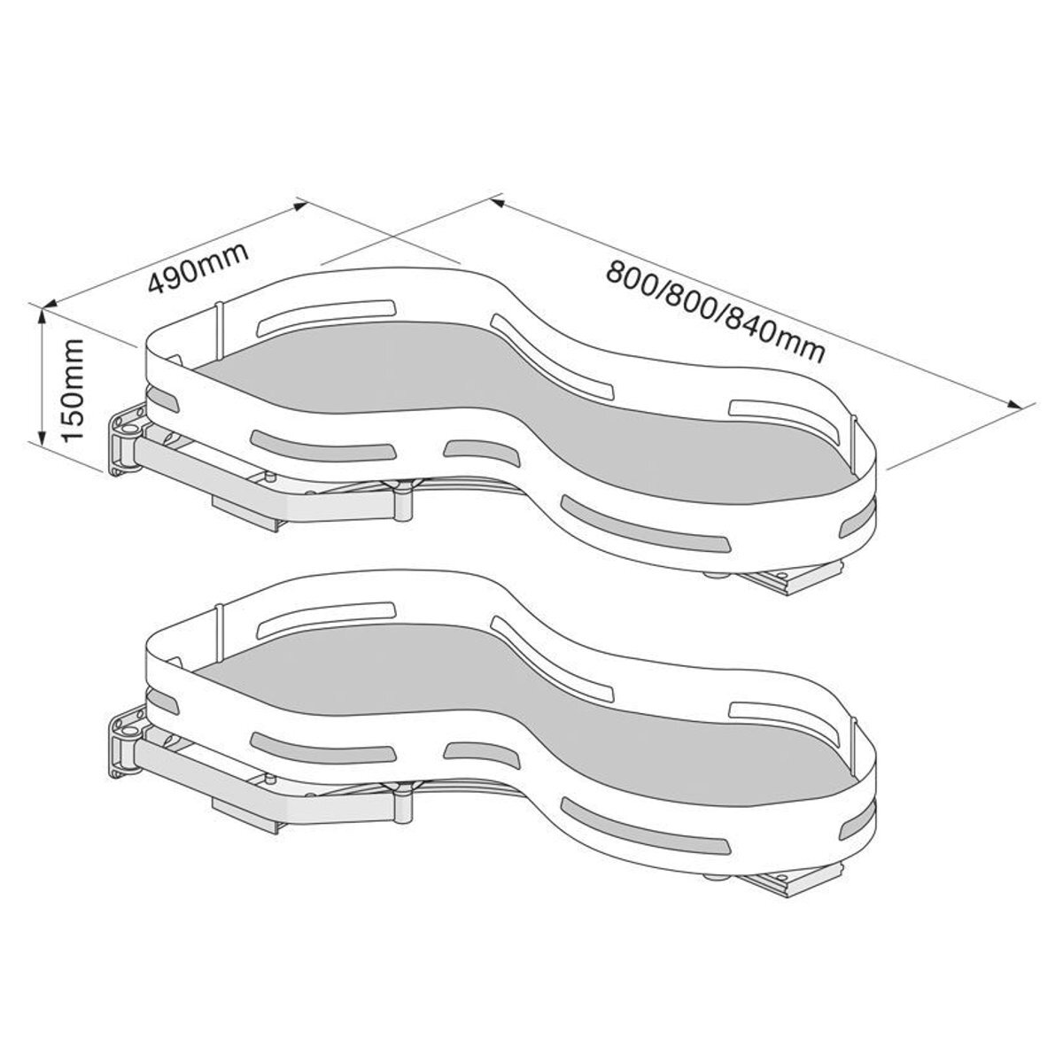 The Materia corner pull-out is a storage solution designed for blind corner cabinets, often referred to as a le mans or kidney-shaped pull-out. It features twin shelves that operate independently, providing easy access to the contents of a corner cabinet.