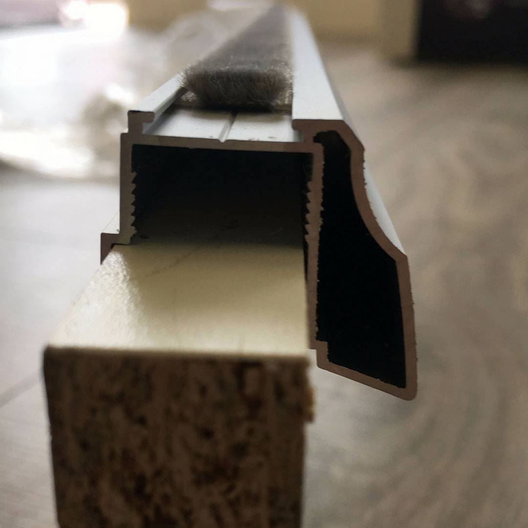 Aluminium full-length profile handles for 16mm and 18mm wardrobe doors and panels. Stylish and easy way of transforming an MDF, MFC or plywood panel into a modern wardrobe door. Simple push-on edge fitting makes an installation process straightforward.