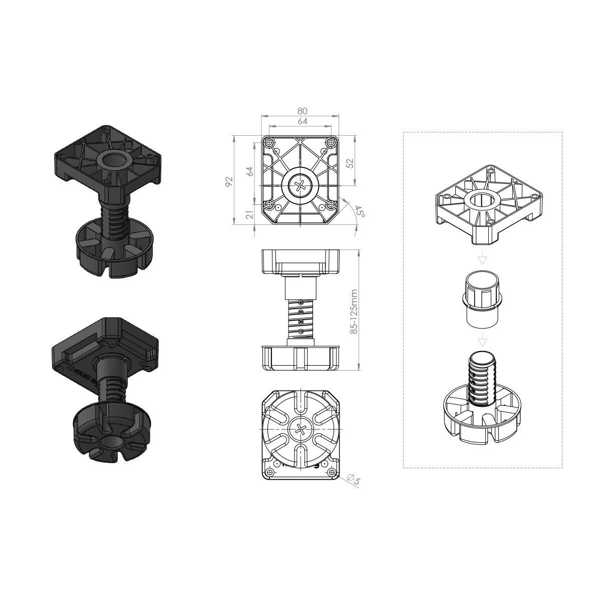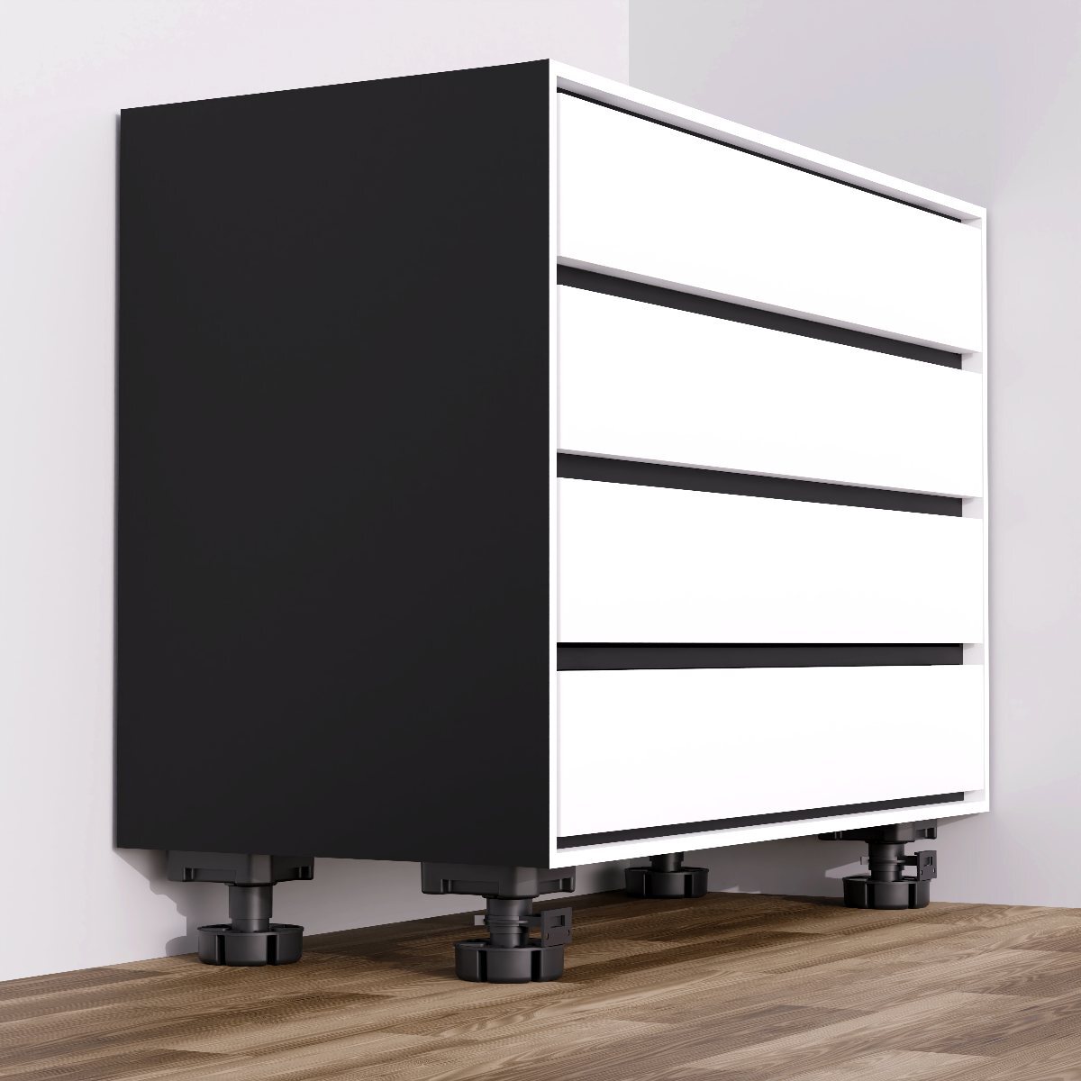 Heavy-duty cabinet legs certified and manufactured in EU. Adjustable heavy- duty plastic cabinet legs perfect for kitchen cabinets, sideboards, wardrobes and other furniture. Available in wide range of sizes.