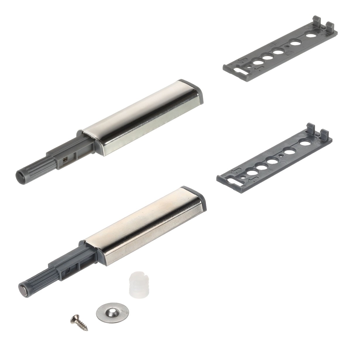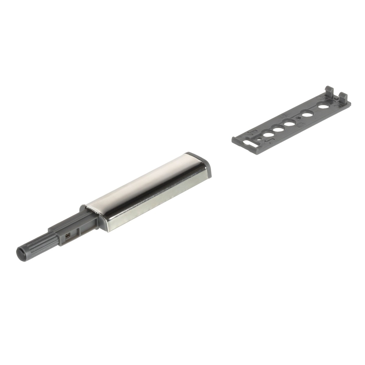 Discover the NK35 push to open mechanism with integrated buffer or magnetic latch. An external 79mm casing with a 44mm pop out solution designed for handle-free cabinet access and enhanced soft-close functionality in modern furniture systems.