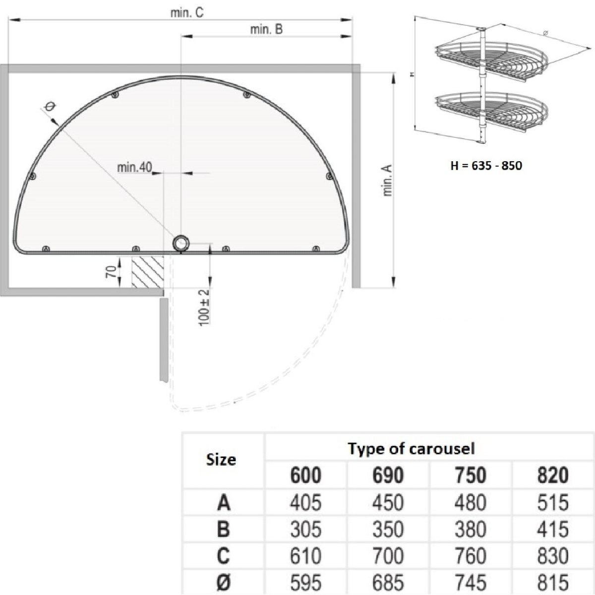 Nova kitchen half-circle wire carousel. High-quality storage solution for corner and blind corner kitchen cabinets to fit a wide range of cabinet sizes. Great for storing pots, pans and groceries.