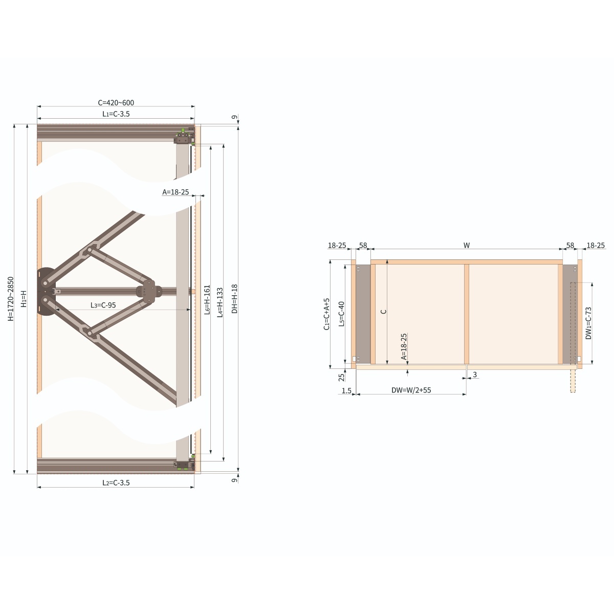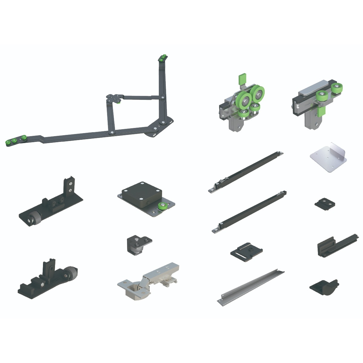 OPK rotary is a simple and effective pivot sliding door gear also called cabinet pocket door gear. It helps to free up space taken by the traditional hinged door by retracting it back into the cabinet carcass or pocket.