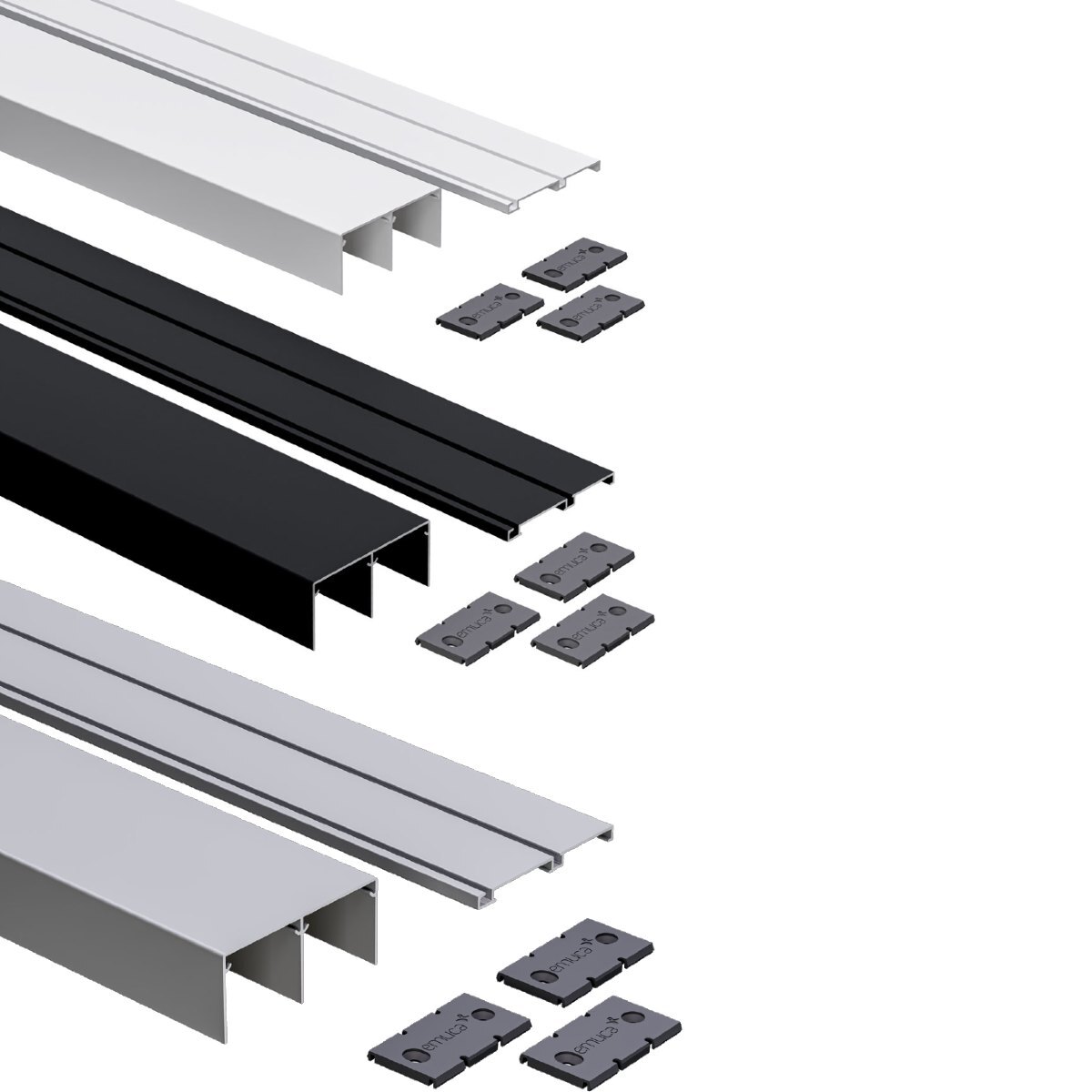 The pair of Placard 74 flush clip channel sliding door wardrobe track set is designed for seamless and efficient sliding door functionality. This track set is part of the comprehensive Placard 74 system, which offers a variety of options for customizing your sliding door solutions.