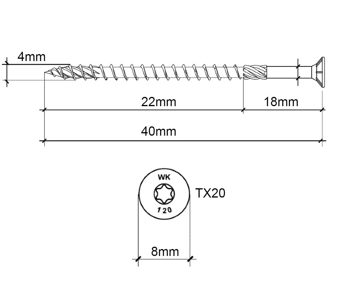 - Double threaded tip – reduces screwing time by 40% and pressure required when screwing