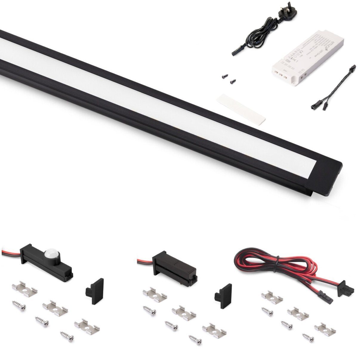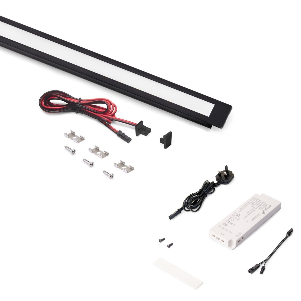 - 1 x Set of clips and screws to mount the profile