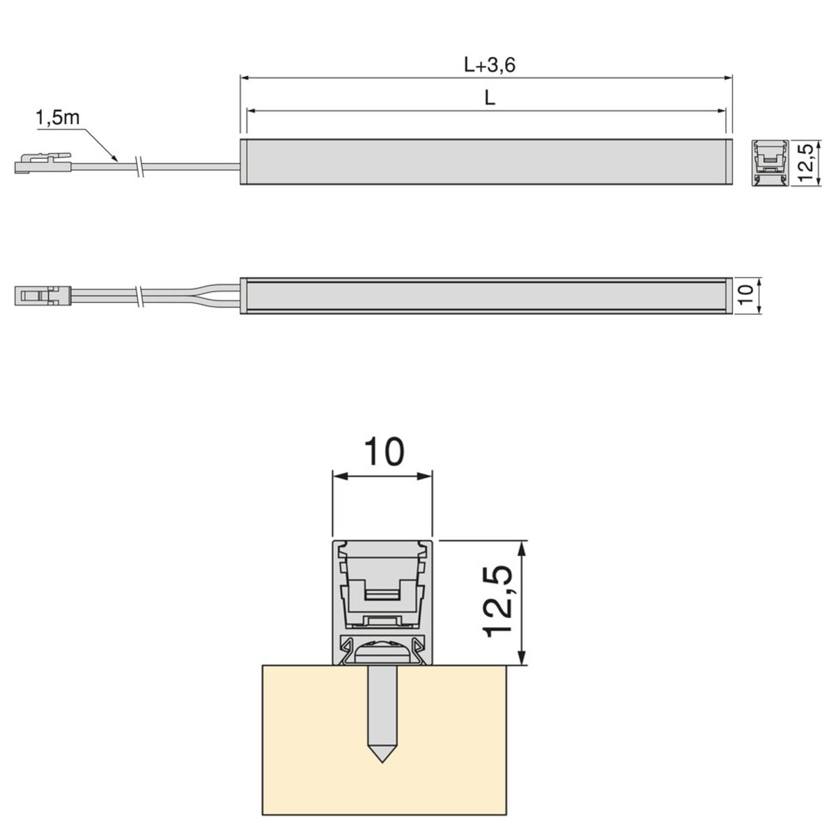 - Set of clips and screws to mount the profile