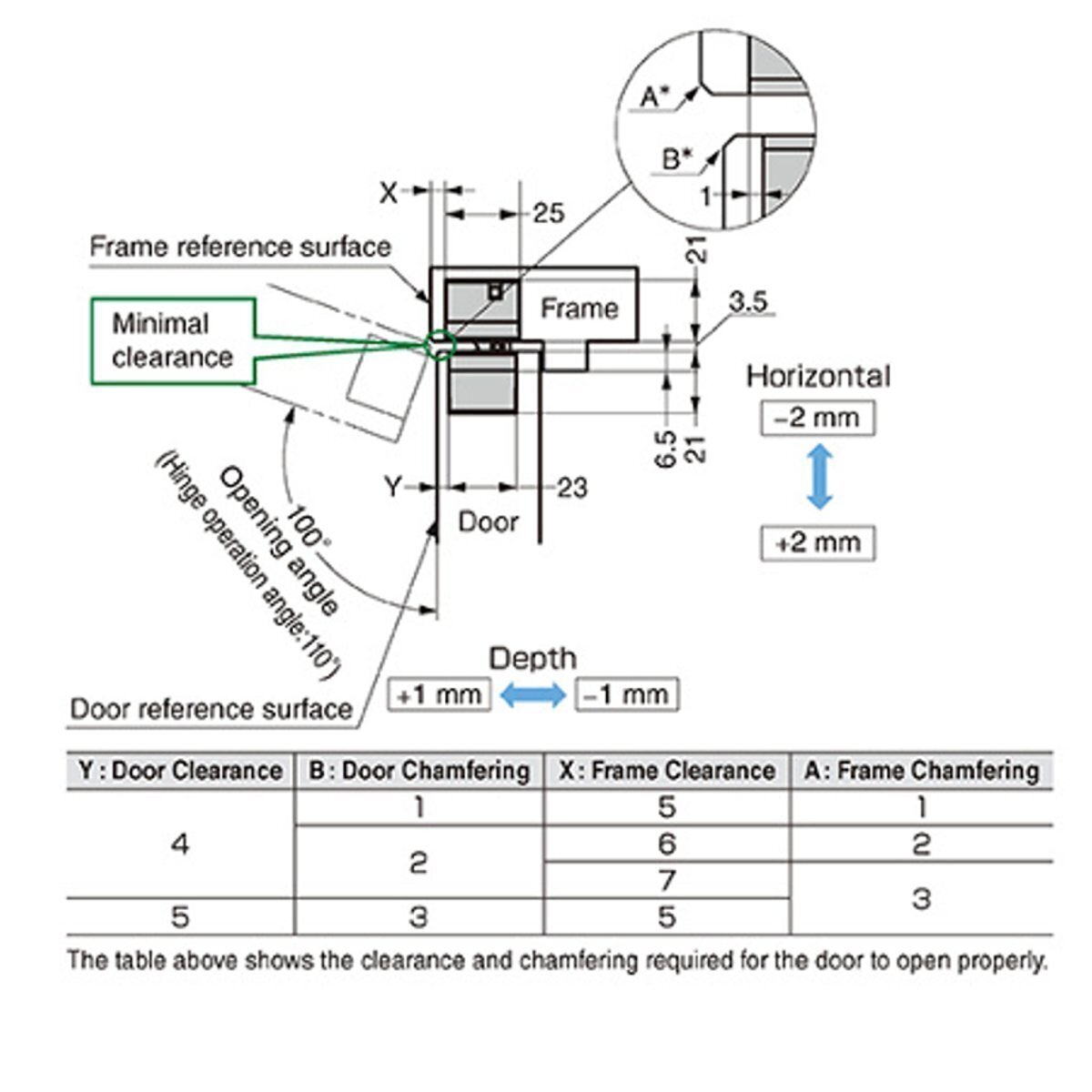 - Opening angle: 100°with the use of a door restrictor