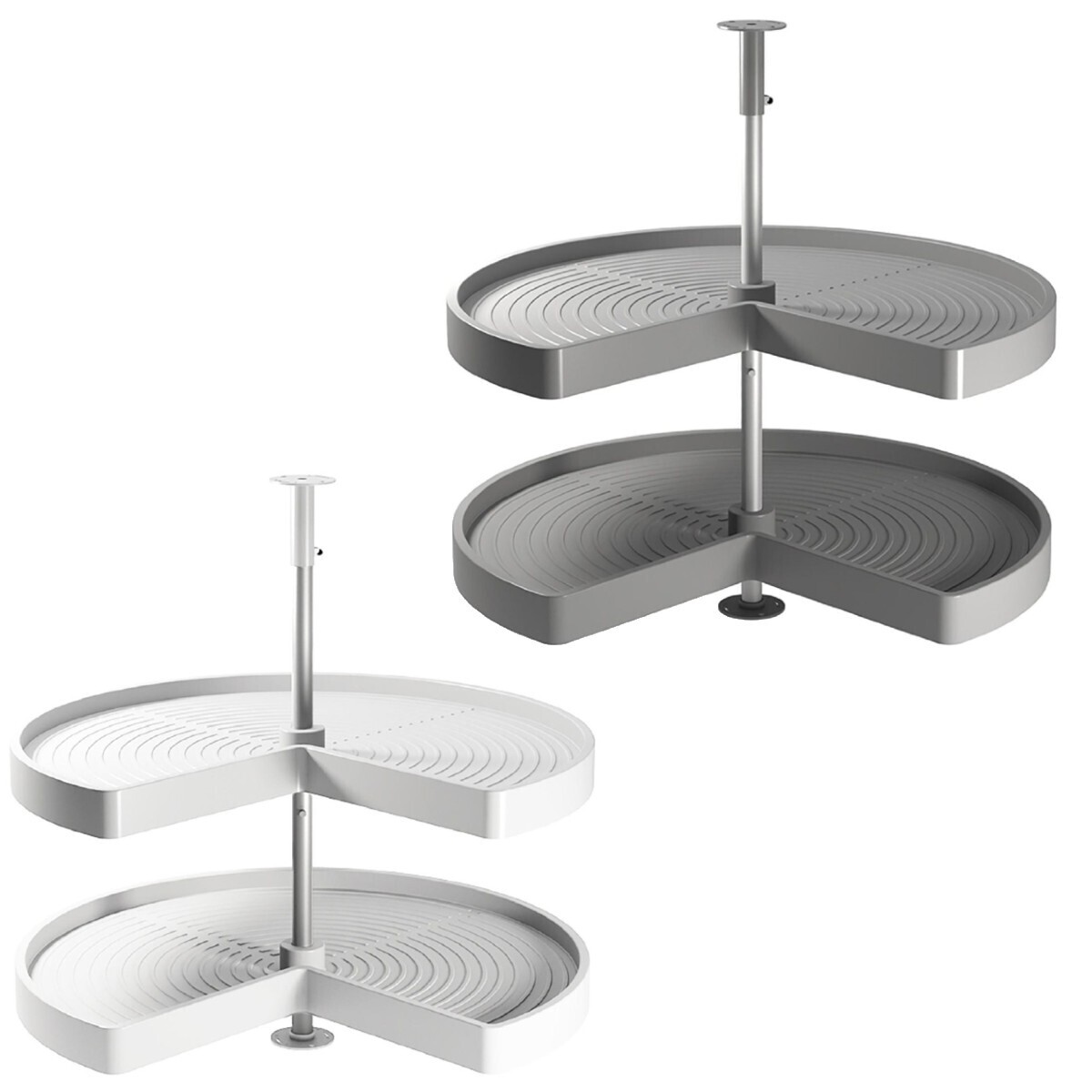- 2 x grey/white three-quarter circle carousel shelve