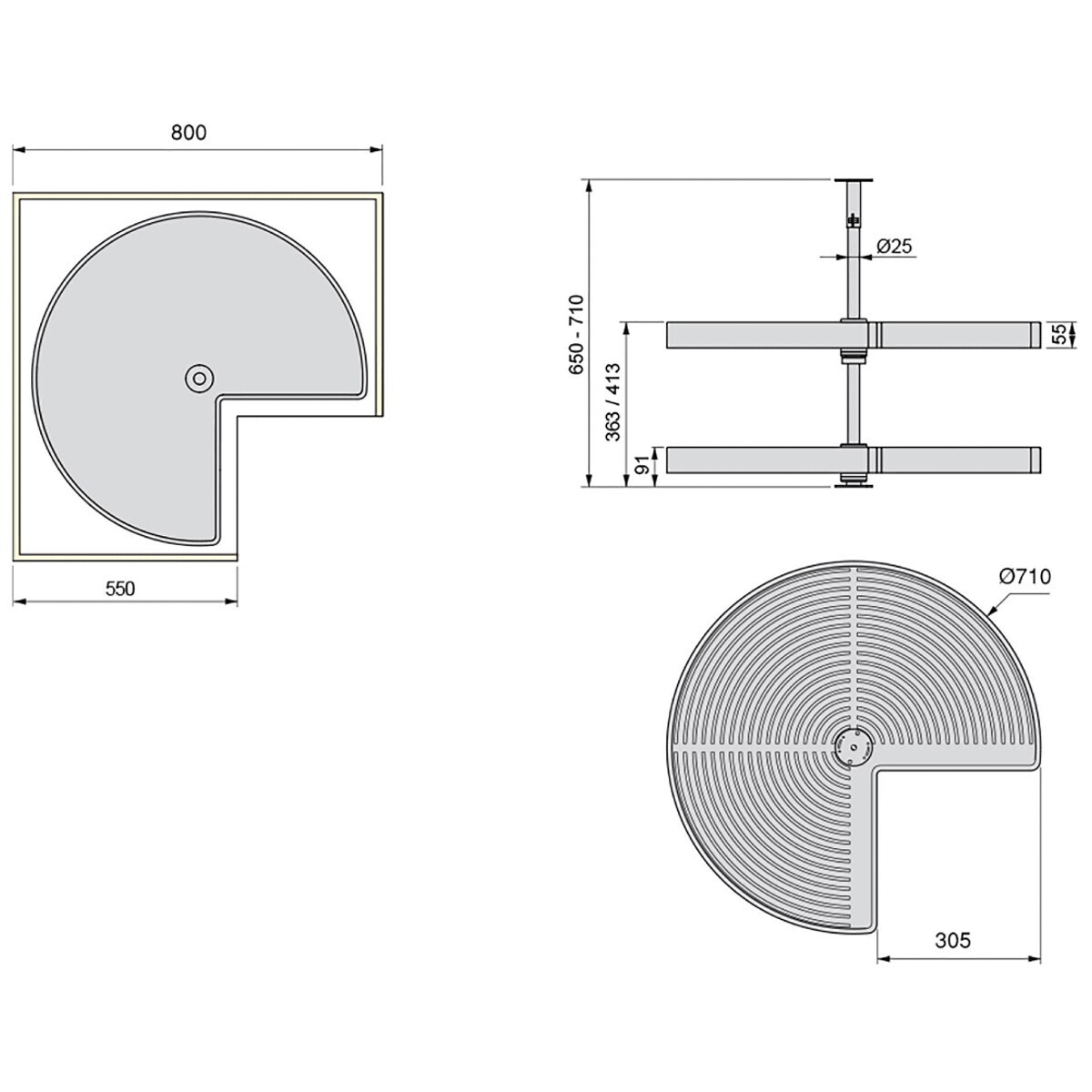 - The 800mm x 800mm cabinet option is for a 710mm diameter carousel