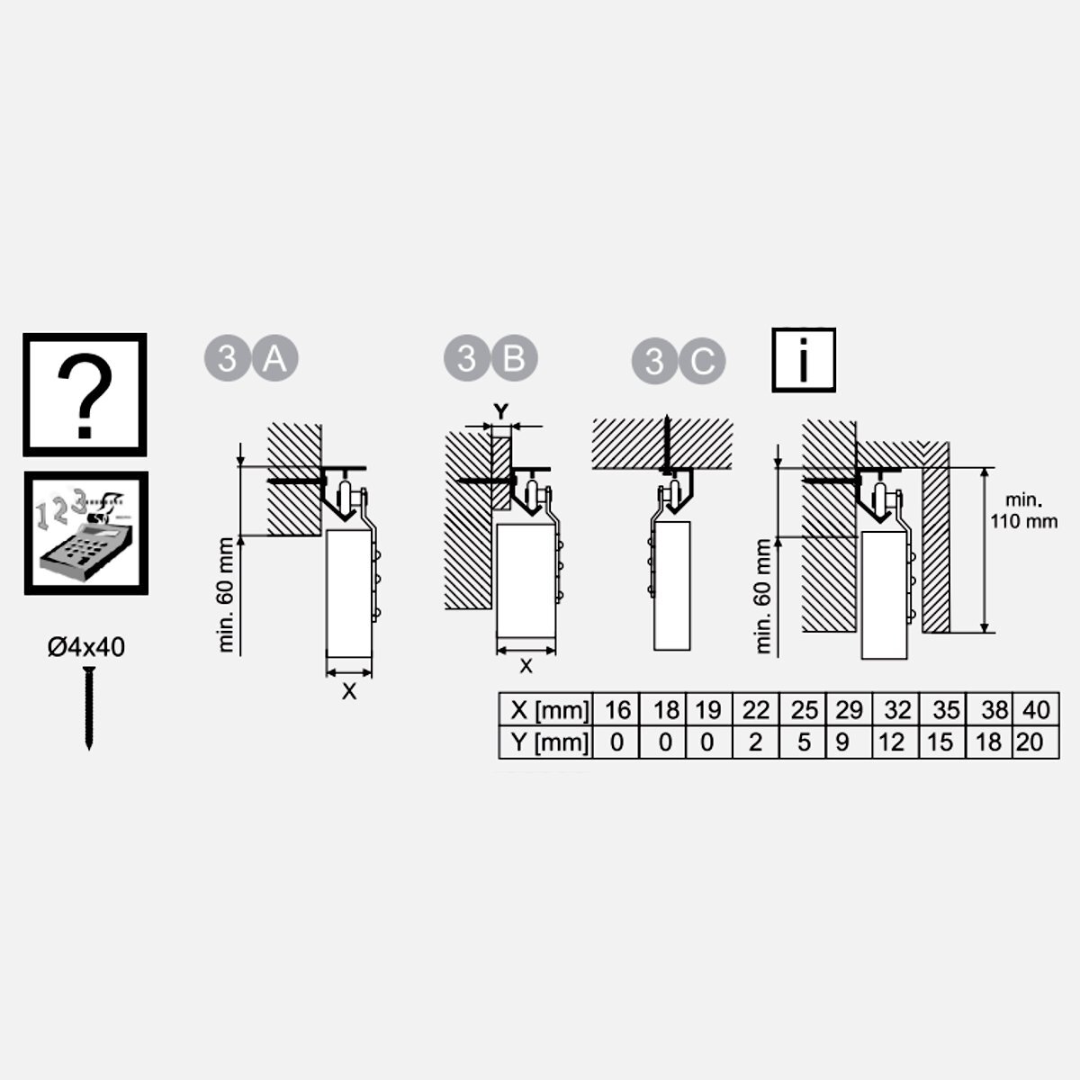 - Minimum door thickness: 16mm