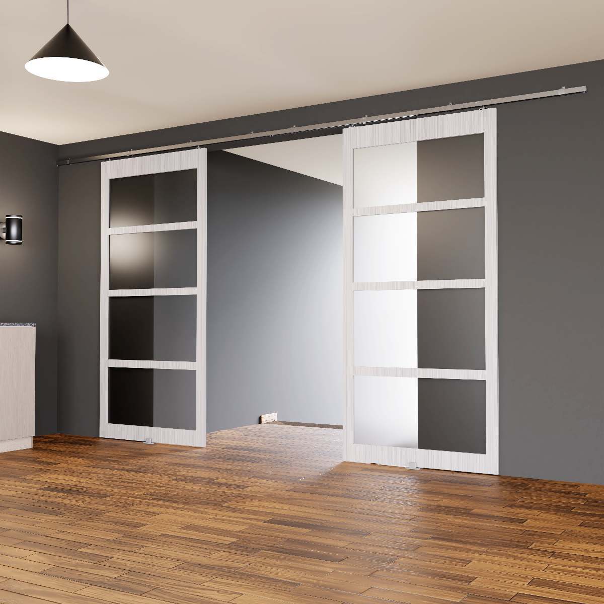 Scarab 80kg sliding door track set is dedicated for room dividing doors. Can be used running along the wall or ceiling mounted. High-quality ball-bearing loaded wheels ensure a smooth and effortless sliding action. The set can be used by professionals and diy-ers and is suitable to work with most of the standard door panels available on the market.