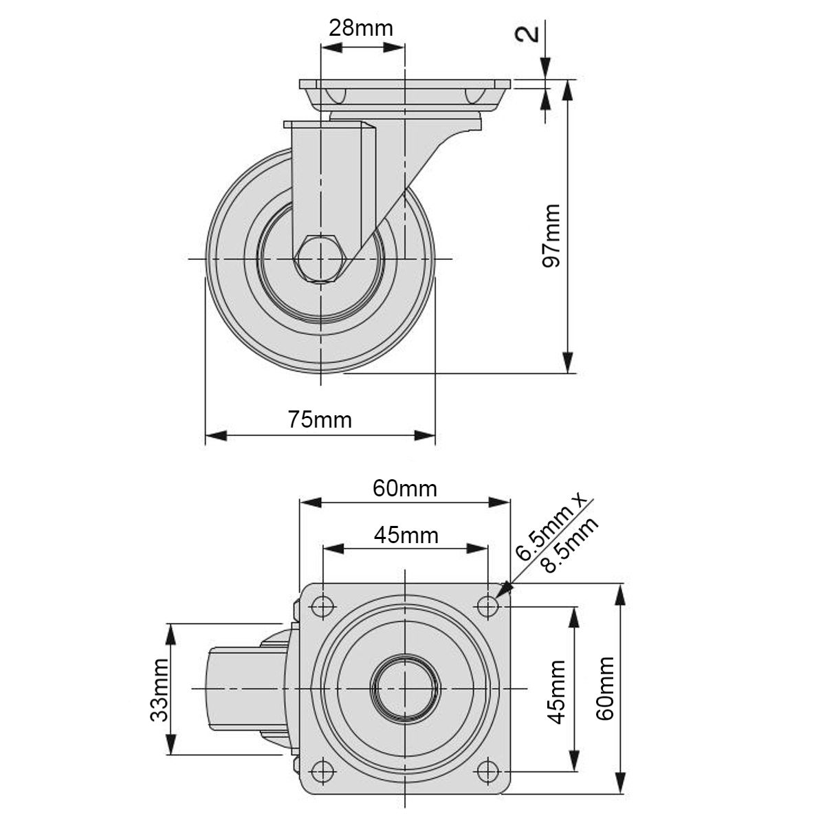 - Diameter of the wheel: Ø50/75mm