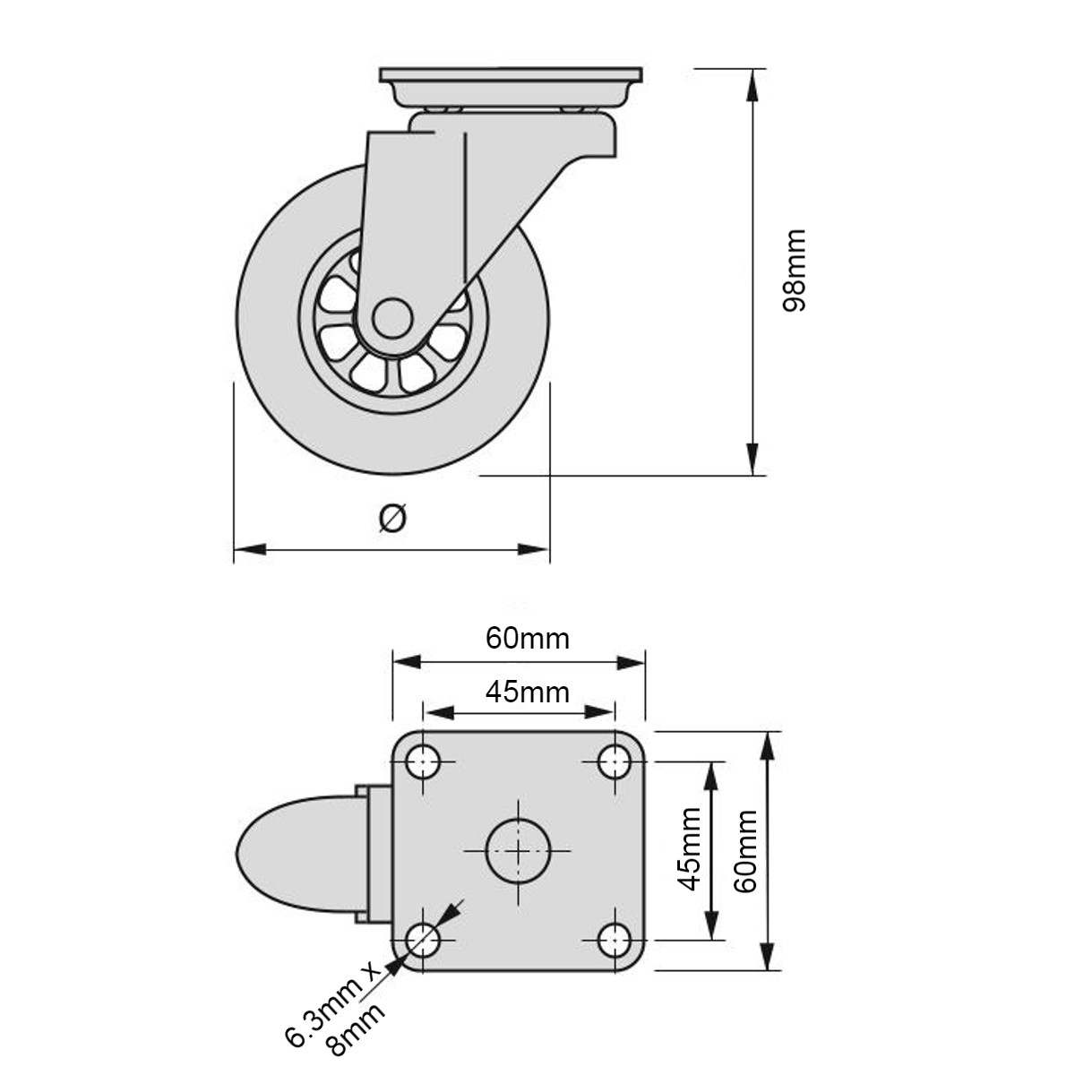 Slip wheel kit Ø50/75mm transparent for cabinets, coffee tables and any other furniture with a maximum weight of 160/200kg. There are 4 castor wheels provided in the kit 2 with brakes and 2 without brakes.