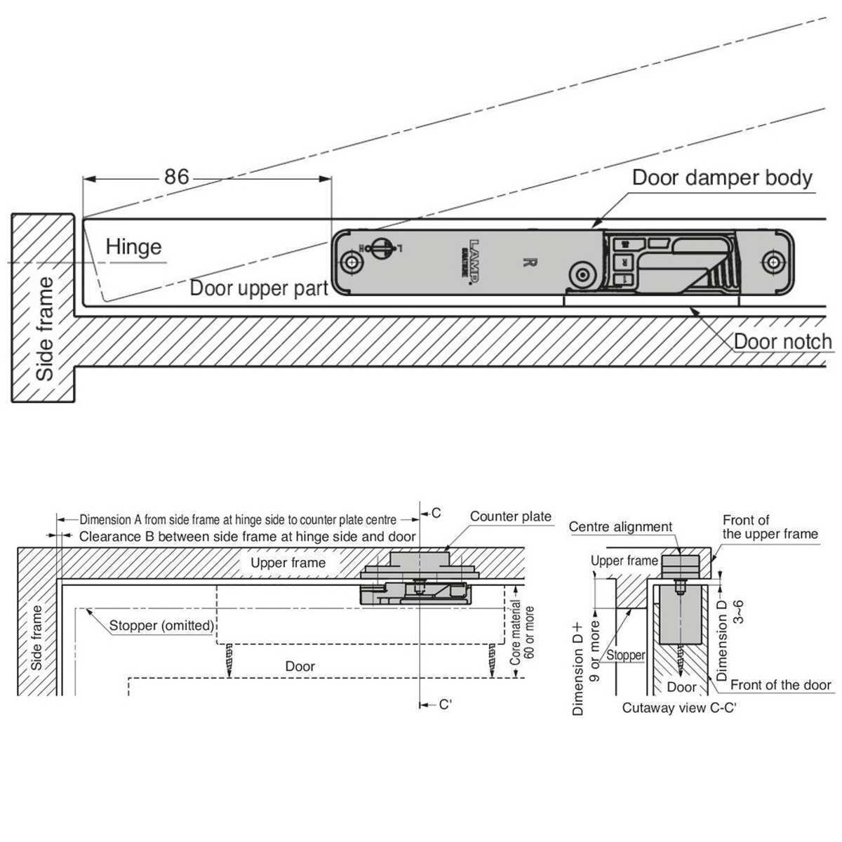 The Sugatsune LDD-V Concealed Door Damper features self-closing and soft-closing capabilities. Adjustable closing speed and a concealed design that remains hidden when the door is closed, making it perfect for doors up to 900mm wide and 15-40kg in weight.