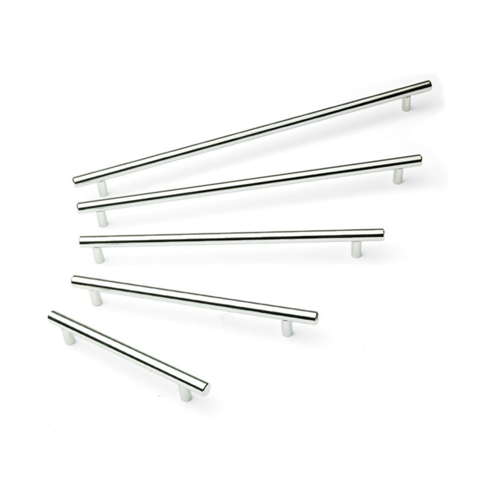 T bar metal cabinet pull handle finished in chrome, available in various sizes. High quality and stylish handle dedicated for kitchen and wardrobe cabinet doors, drawers, sliding doors and sliding wardrobes. The simple and timeless design will go well with modern and period or rustic interiors.